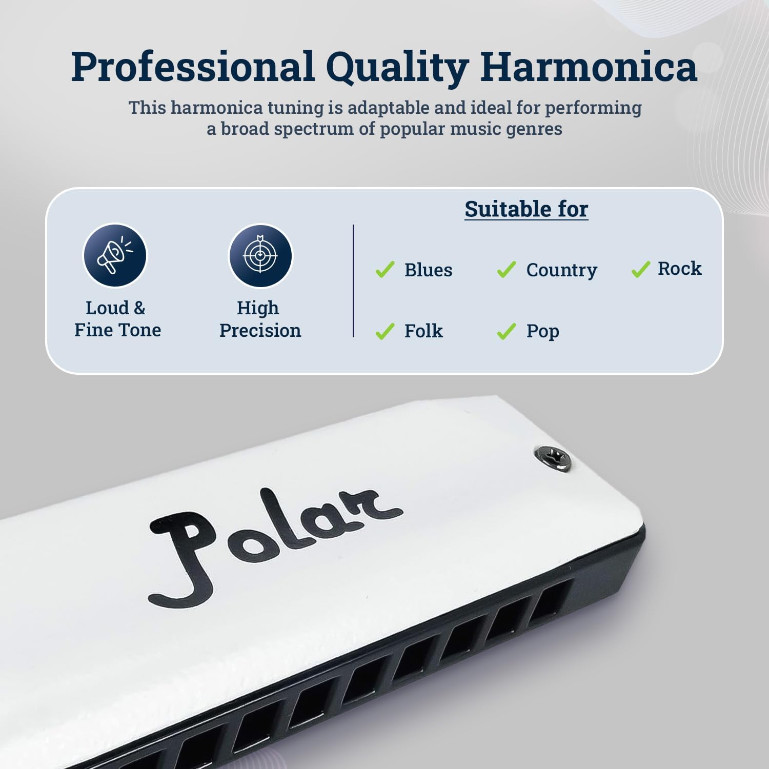 - HARMONIC MASTERY IN Bb: Specially tuned in the key of Bb, our Polar Diatonic Harmonica delivers melodious sound quality across various genres - Blues, Country, Folk, Pop, and Rock, serving as a versatile musical instrument for both novice learners and seasoned musicians.