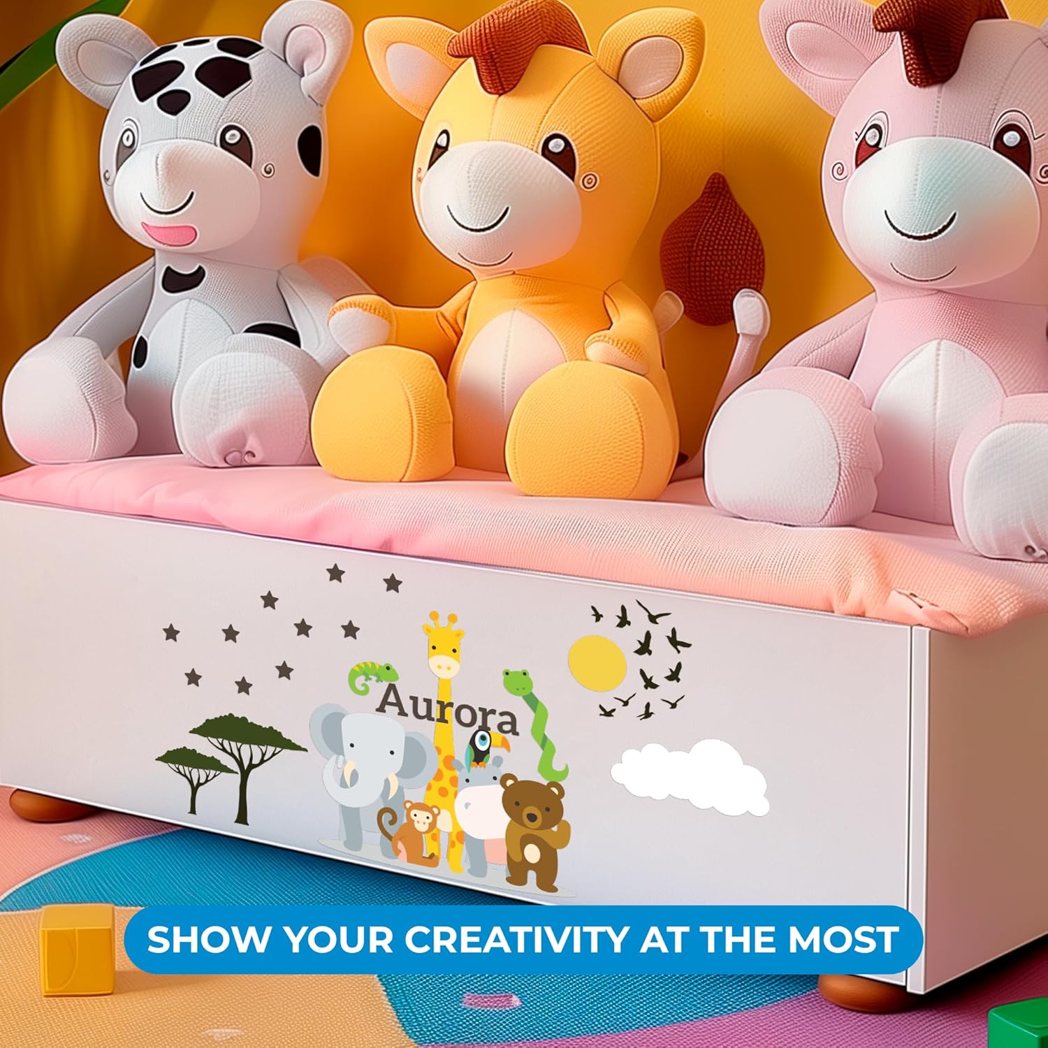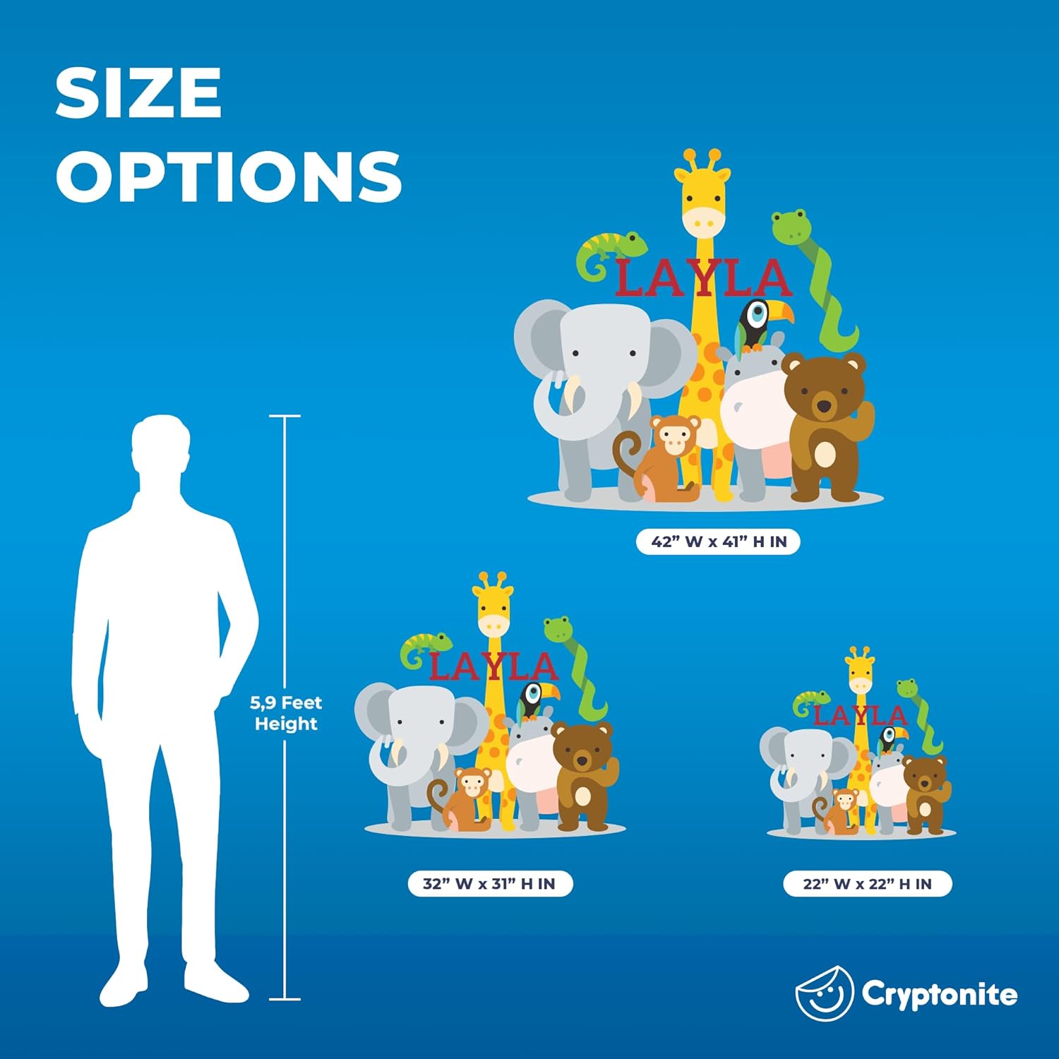 CRYPTONITE Personalized Name Jungle Animals Vinyl Wall Decor I Nursery Wall Decal for Baby Boy & Girl Decoration I Stickers for Kids I Multiple Options for Customization (A. Jungle Animals)