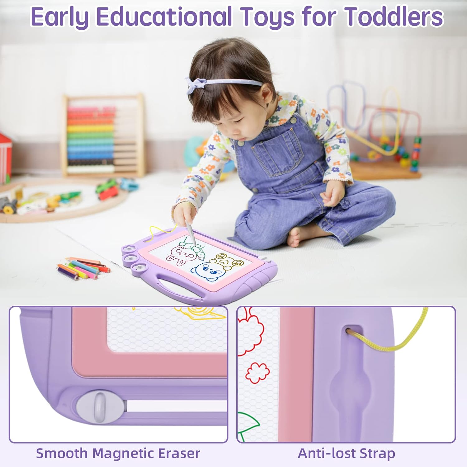 AiTuiTui Magnetic Drawing Board Toddler Toys for Girls Gifts, Erasable Sketch Writing Doodle Pad Travel Games for Kids in Car, Early Education Learning Skill Development Toys for Kids Toddlers