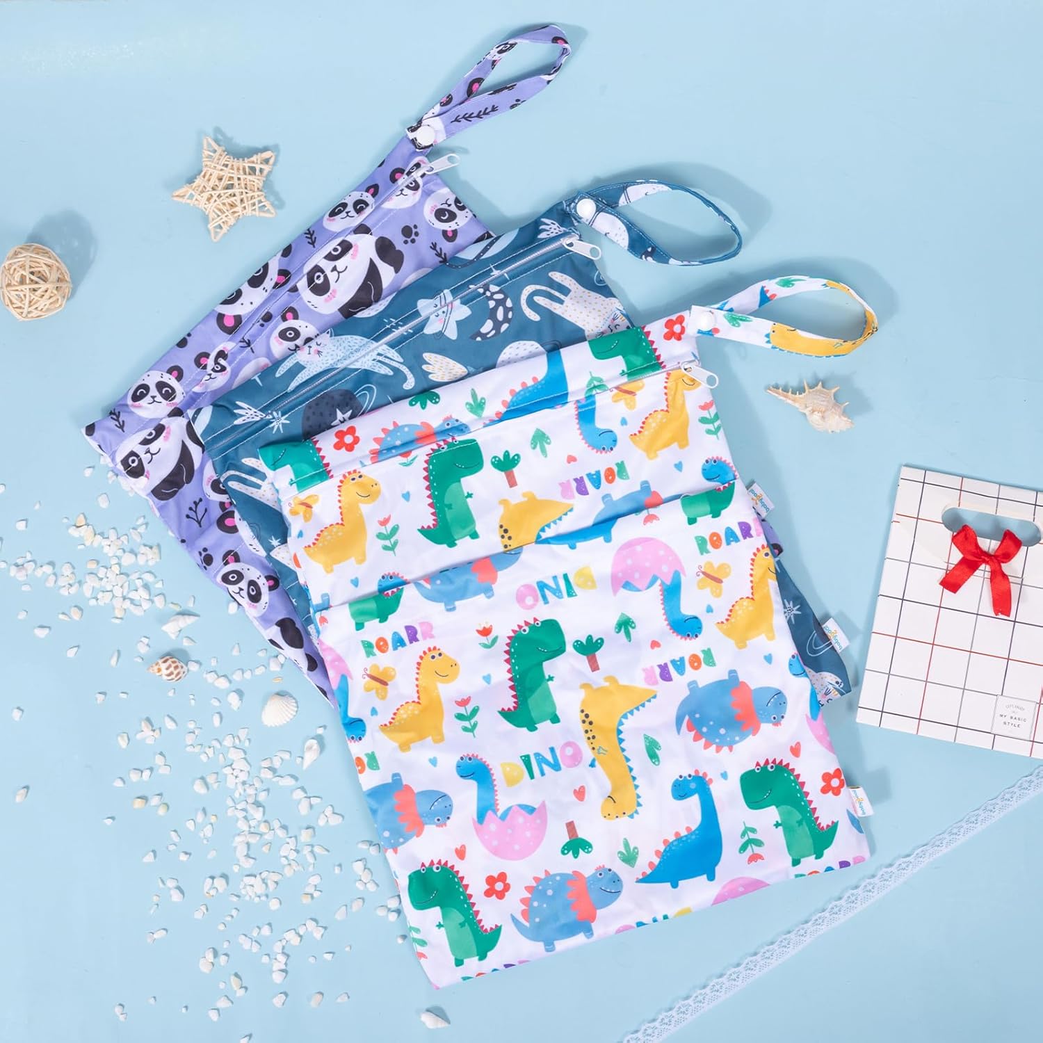 - Multi-Function: You will receive 3 pack wet bags, which size is 11.8"x14.2". They are perfect for preserving cloth diapers and other baby products, and they can also be used as swimsuit bags, bikini bags, bathing suit bags, travel bags, gym bags, storage bags, cosmetic bags, handbags, wash bags, organizer bags, breast pump parts bags, even as picnic bags. They are ideal for baby shower gift, get yours today!