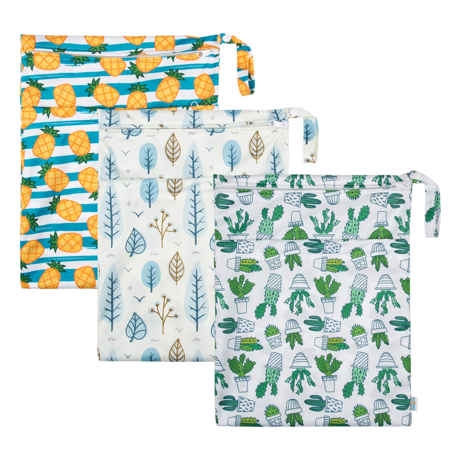 babygoal Wet Dry Bags for Baby Cloth Diapers, Washable Travel Bags, Beach, Pool, Gym Bag for Swimsuits & Wet Clothes with Two Zippered Pockets 3 Pack, 3LN05