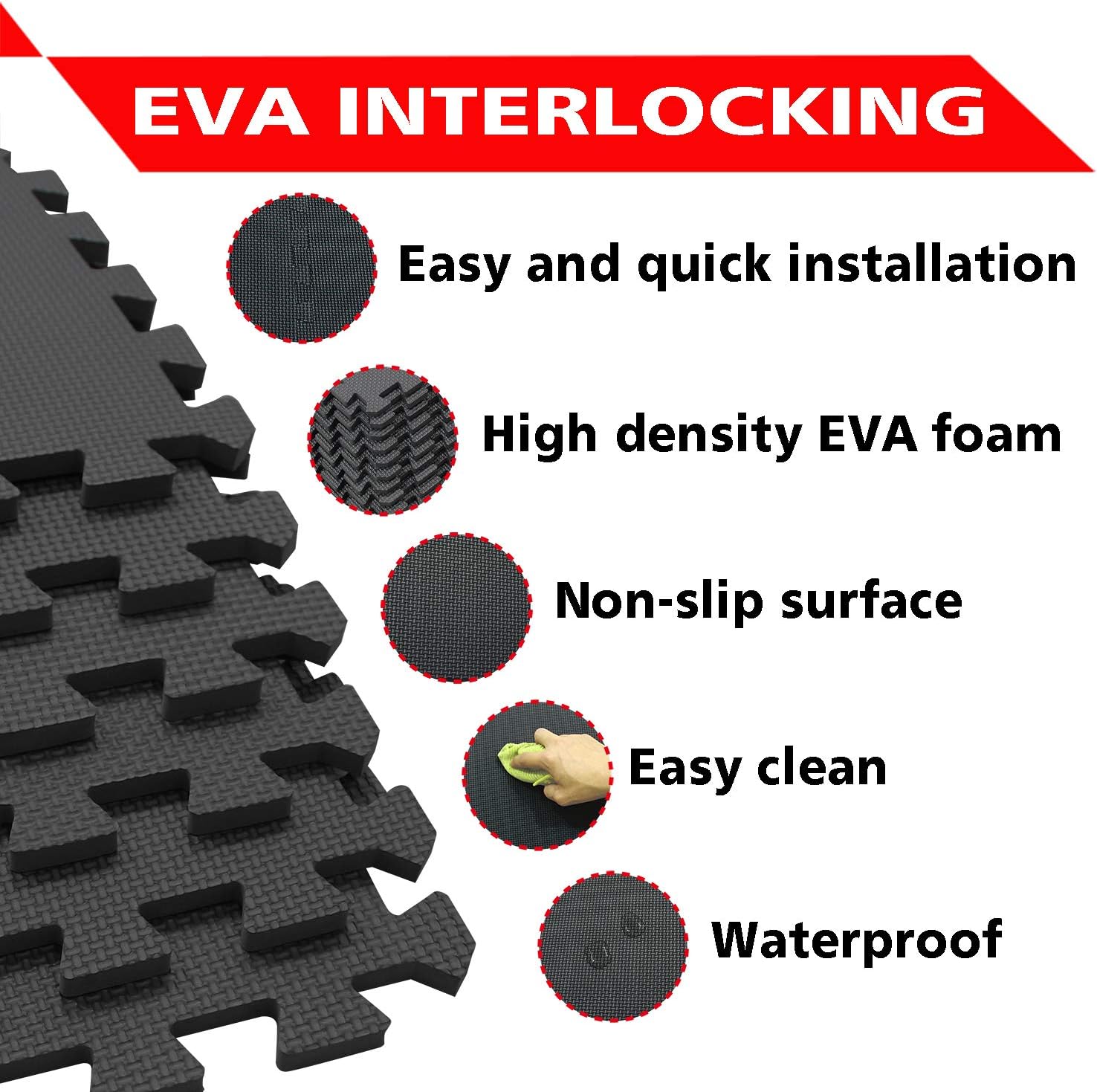 - Cover area: 86CM x 170CM( ±1CM) / approx. 1.46 SQ. M,one sets 18pcs,(300mm x 300mm x 10mm). Package includes 9 BLACK and 9GRAY interlocking foam tiles, making it a perfect workout and training accessory.
