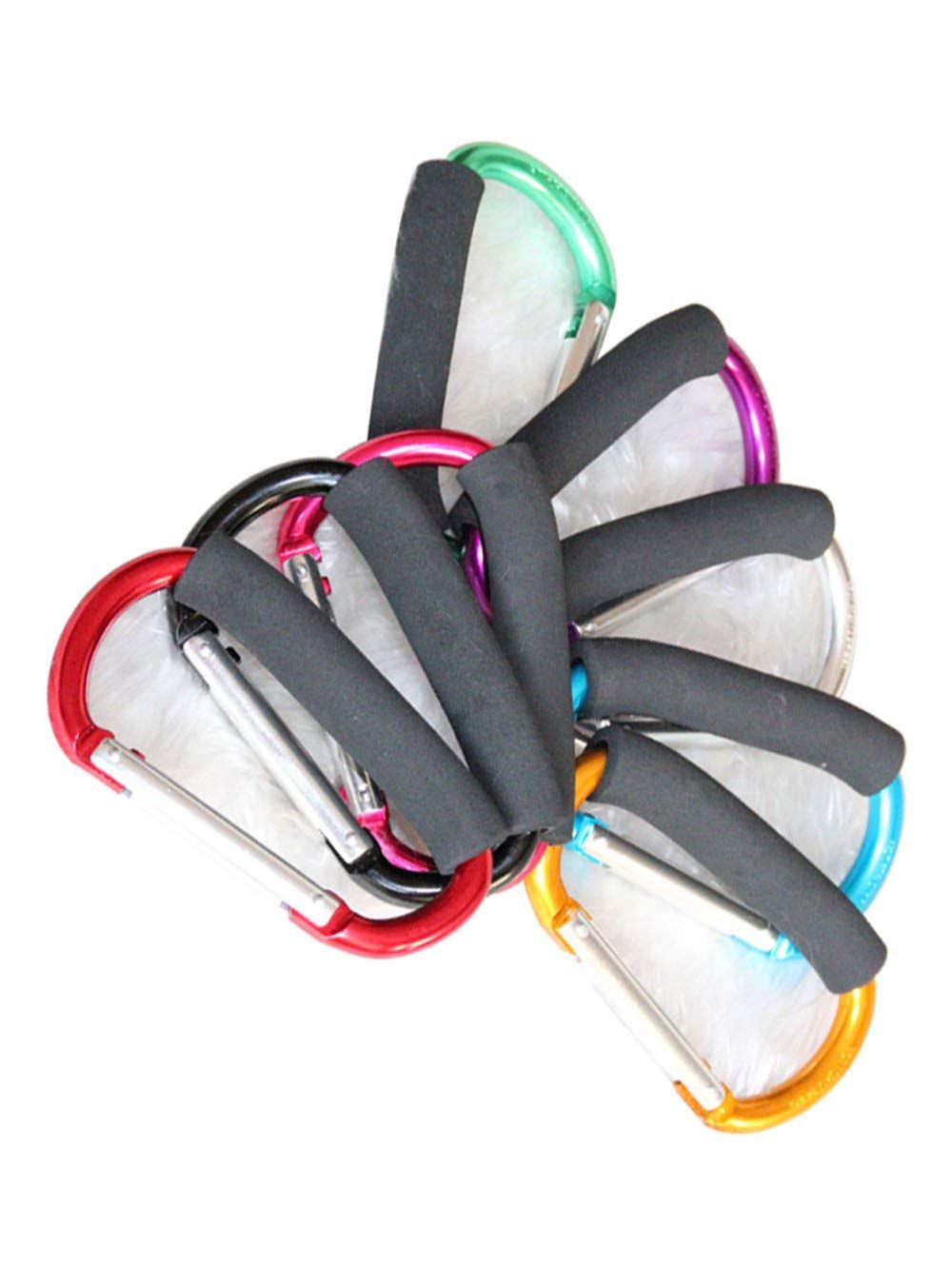 - MULTIFUNCTION HOOKS: With a foam grip, the Carabiner hooks are ideal for carrying shopping bags or grocery bags while shopping without hurting your hands, and they are perfect for transporting bags from your car to the house. Also great for connecting bags to luggage when you hiking or traveling, connecting multiple dog leaches, and much more. An easy way to hang your bags on the hanging rod, it save some space in your closet.