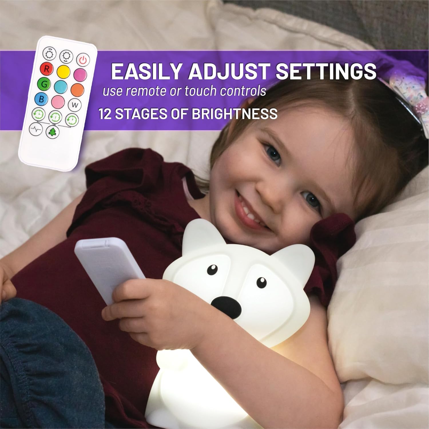 Lumipets Remote Control Silicone Night Light for Kids - Fox Design with 9 Soft Colors & Sleep Timer - Rechargeable, Battery-Operated Lamp for Bedroom | Baby Nursery, Toddler, Girls, Boys