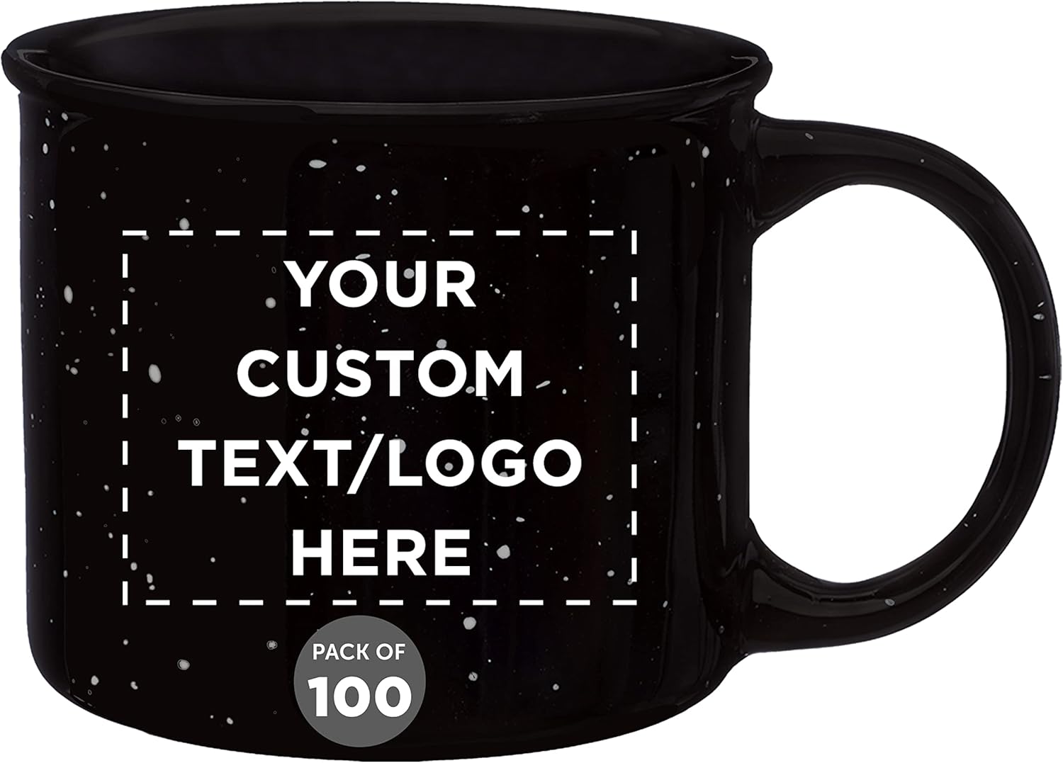 DISCOUNT PROMOS Custom Ceramic Campfire Coffee Mugs 13 oz. Set of 100, Personalized Bulk Pack - Perfect for Tea, Espresso, Cappuccino, Hot Cocoa - Black