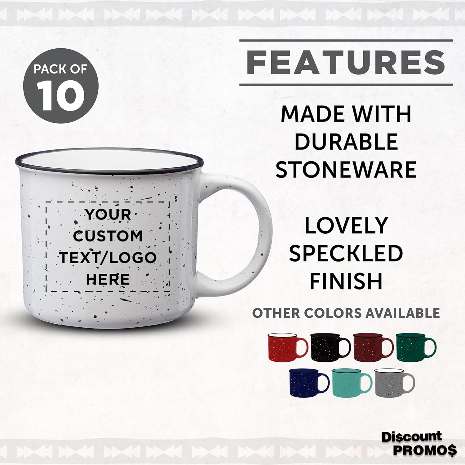 DISCOUNT PROMOS Custom Ceramic Campfire Coffee Mugs 13 oz. Set of 10, Personalized Bulk Pack - Perfect for Tea, Espresso, Cappuccino, Hot Cocoa - White