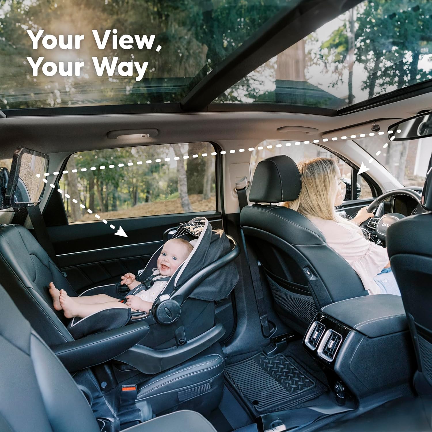 Large Shatterproof Baby Car Mirror, Backseat - Safety Car Seat Mirror for Baby Rear Facing, 360 Wide Crystal Clear View, Accessories for Removable Headrest, Easy Install & Adjustable (Sleek Black)