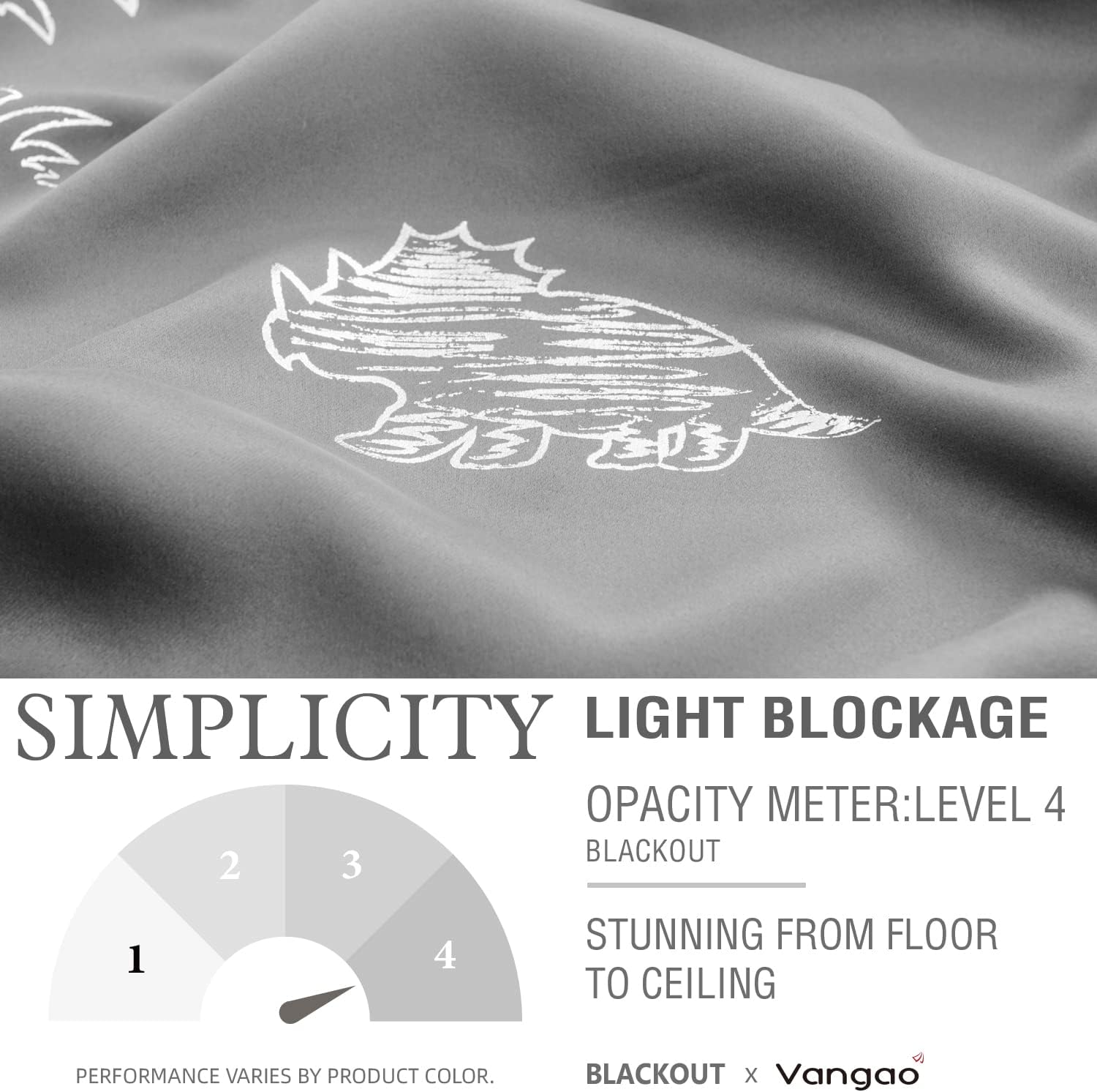 Vangao Kids Curtains Grey Blackout Dinosaur Curtains for Boys Kids Nursery Girls Room Silver Dino Foil Print Thermal Insulated Drapes Grommet Top Window Treatments 84 Inches Length 2 Panels