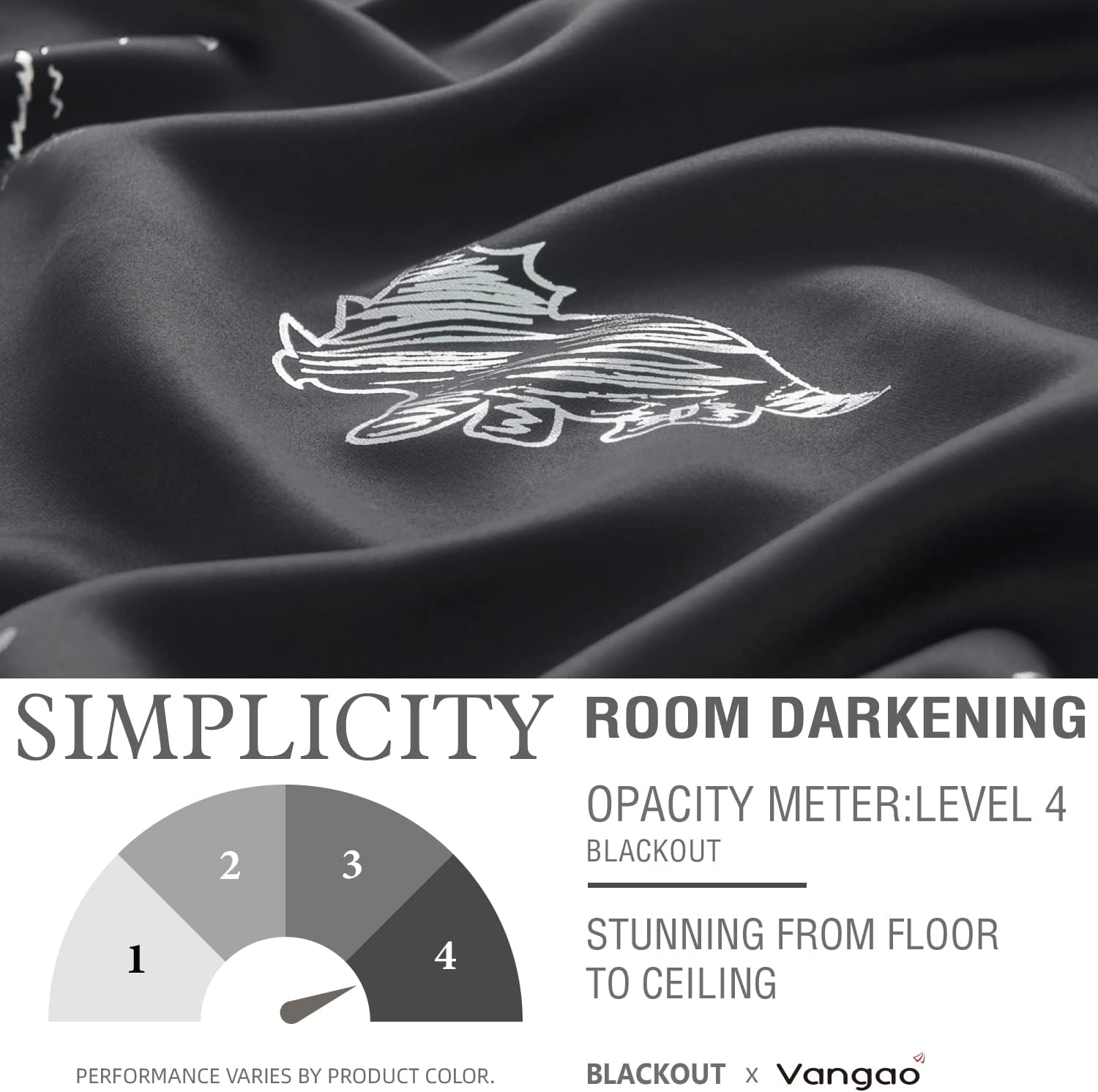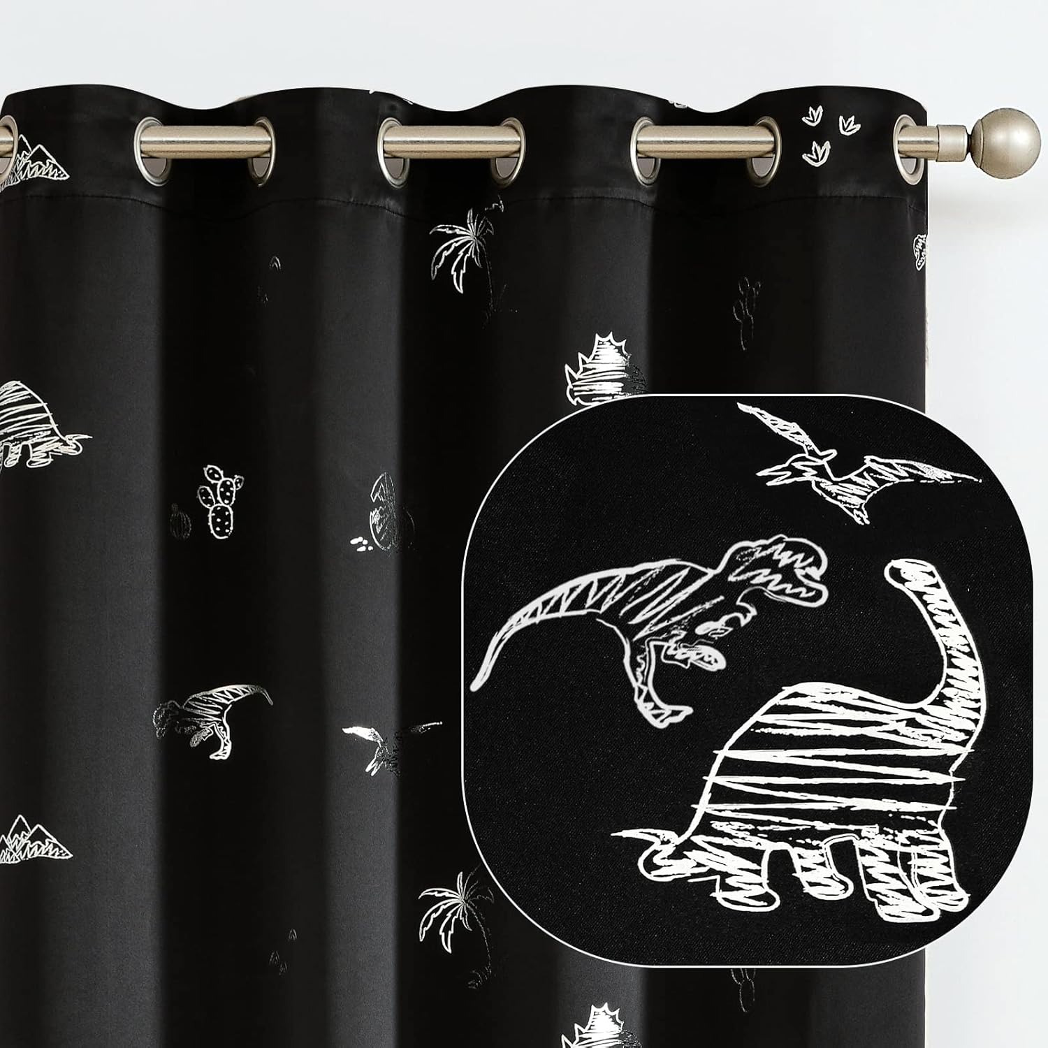 Vangao Kids Curtains Black Blackout Dinosaur Curtains for Boys Kids Nursery Girls Room Silver Dino Foil Print Thermal Insulated Drapes Grommet Top Window Treatments 84 Inches Length 2 Panels