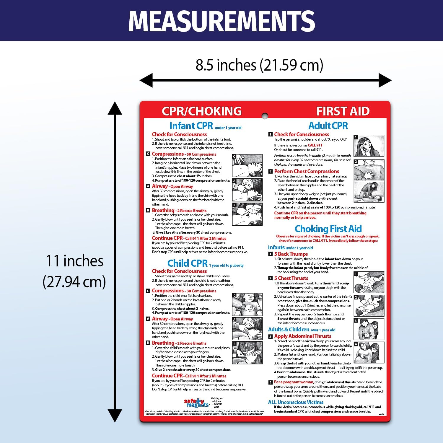 - 10-Pack of Magnetic CPR & Choking First Aid Cards – Each fully laminated card measures 8.5" x 11" and features 4 magnets on the back, allowing you to easily attach them to any metal surface. Made in the USA.