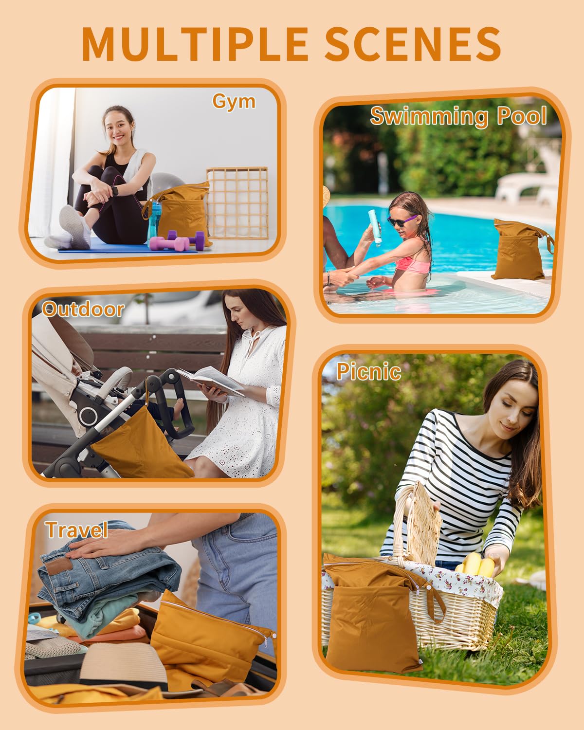 - Double-Pocket Design with Snap Handle: Each wet bag contains two pockets, which comes with two zip closures to ensure that nothing will drop out of the bag and better to keep the clean and dirty items separately. With the snap handle design, you can unbutton the haddle and easily hang the bag on the stroller or door knobs, towel rod ect. anywhere you want.