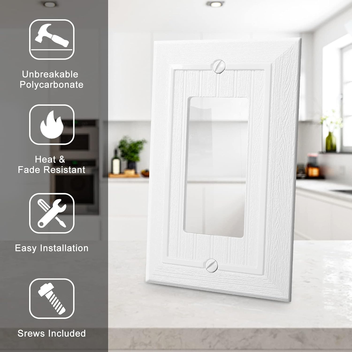 - ✔Package includes 4 Pack White 1-Gang Rocker Wall Plates with matching screws; Size 4.88" x 3.15". Add a decorative accent to your living space!