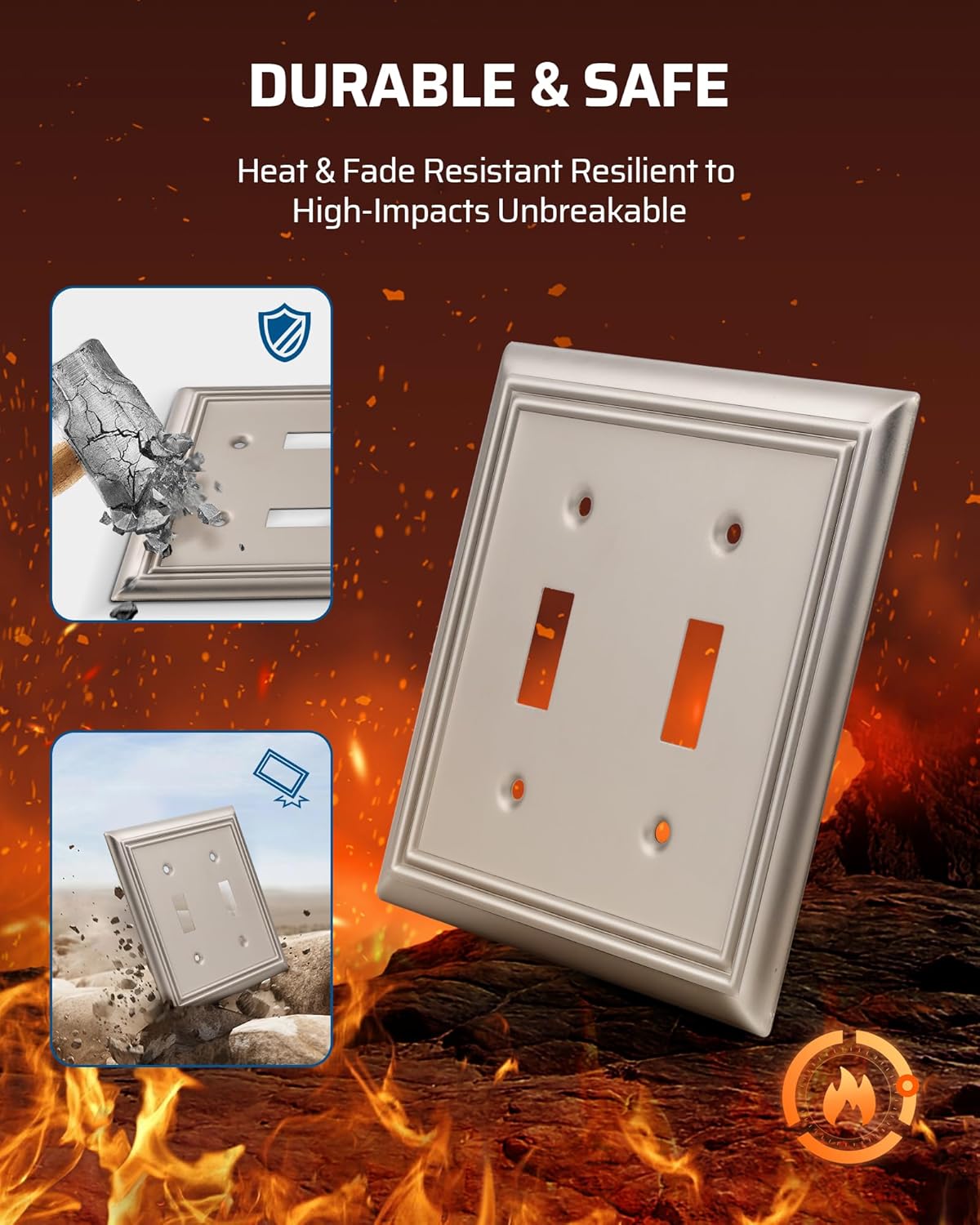 DEWENWILS Double Toggle Wallplates, Brushed Nickel Light Switch Covers, Heavy Duty Matel Material, Pack of 2