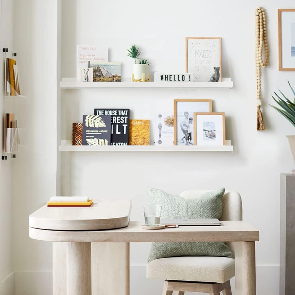- 【Multiple combinations, More creativity】 You can connect two or more Ledge shelves together to hang them in a line all as 72 or 108 Inches long to display picture frames, picture books, legos, collectibles in your kids nursery. They can also be hanged as vertical model as wall shelving unit rack and hold photo frames, family pictures, small plants, canvas, knick knacks, pop figurines, mugs collectibles and vinyl records form your gallery wall in your living room, bedroom, family room or hallway.
