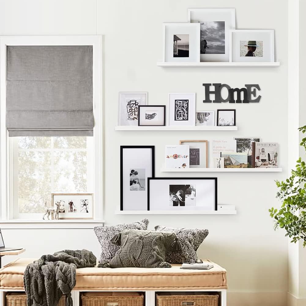 - 【Easy Installation & Breeze Disassembly】These modern & versatile floating shelves 36 inch come assembled in sets of 4. Easy to install when open carton box to hang picture shelves following instuction manual. When disassembling, just remove screws.