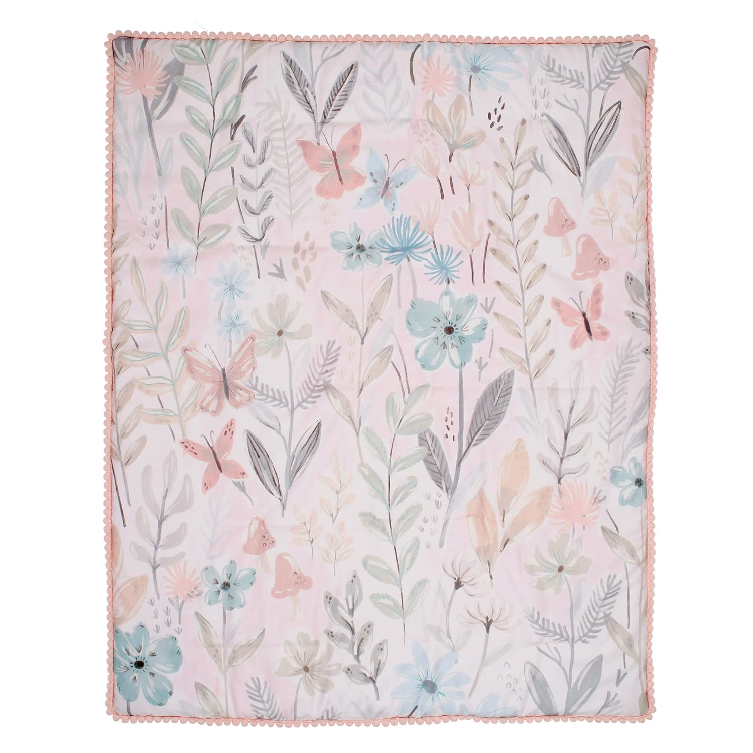 Lambs & Ivy Baby Blooms 3-Piece Pink Floral/Butterfly Baby Crib Bedding Set