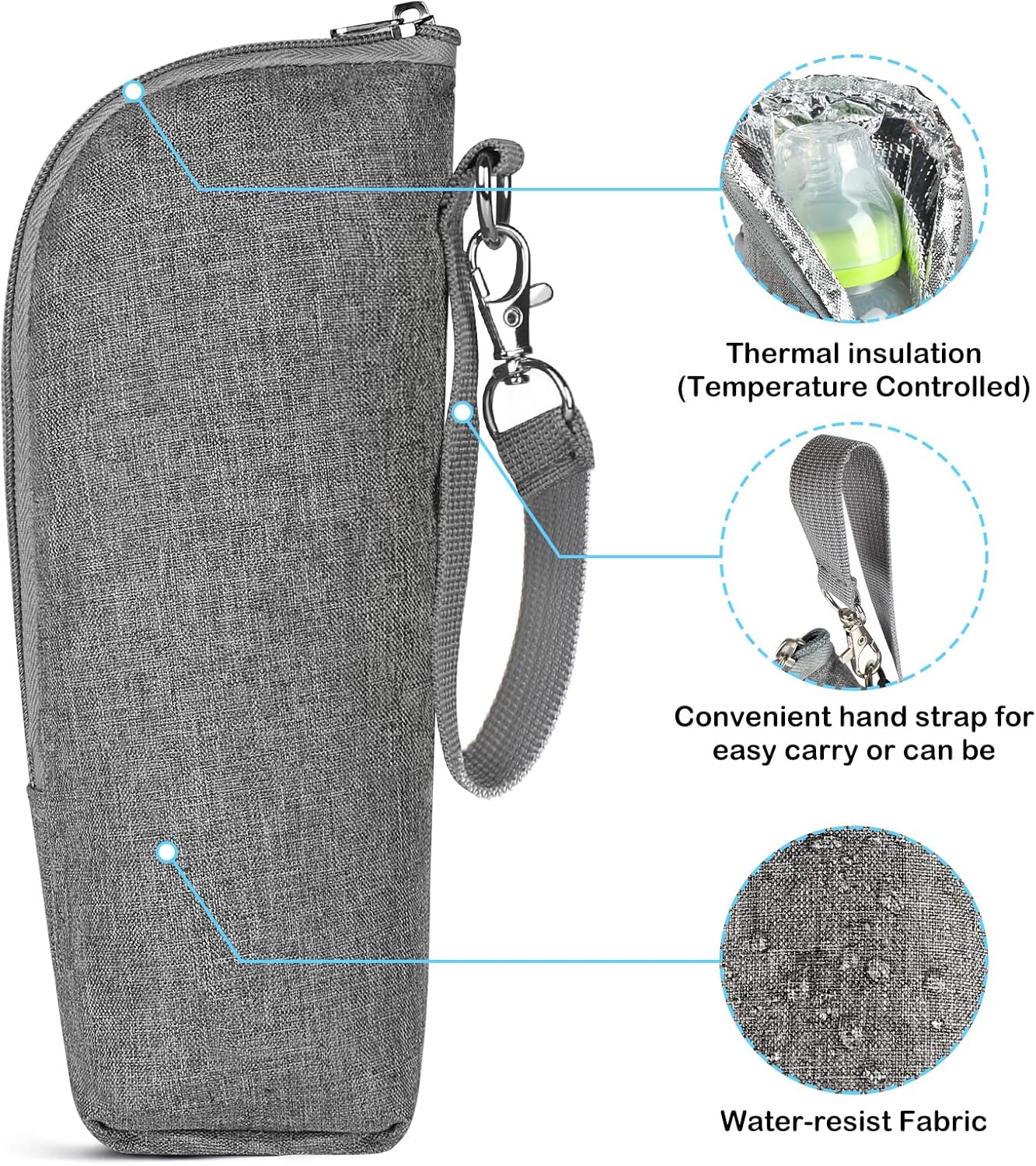 - Size: The milk bottle storage bag measures about 8x7x22cm/3.15x2.76x8.66in, universal to most milk bottle.