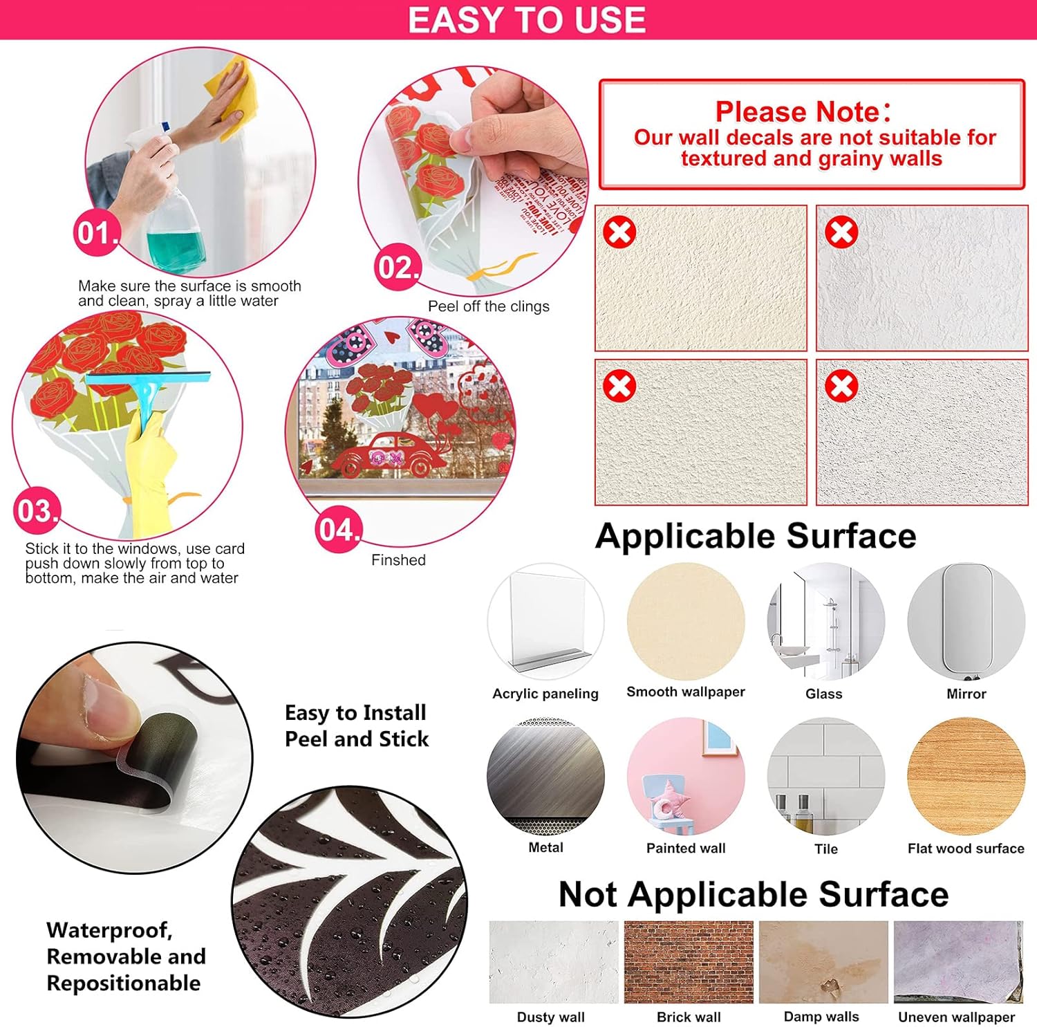 - 🐻【Easy to use】This decal is convenient to use.Just peel them off carefully and stick them on the smooth,clean,dry and dust-free surfaces with your hands.