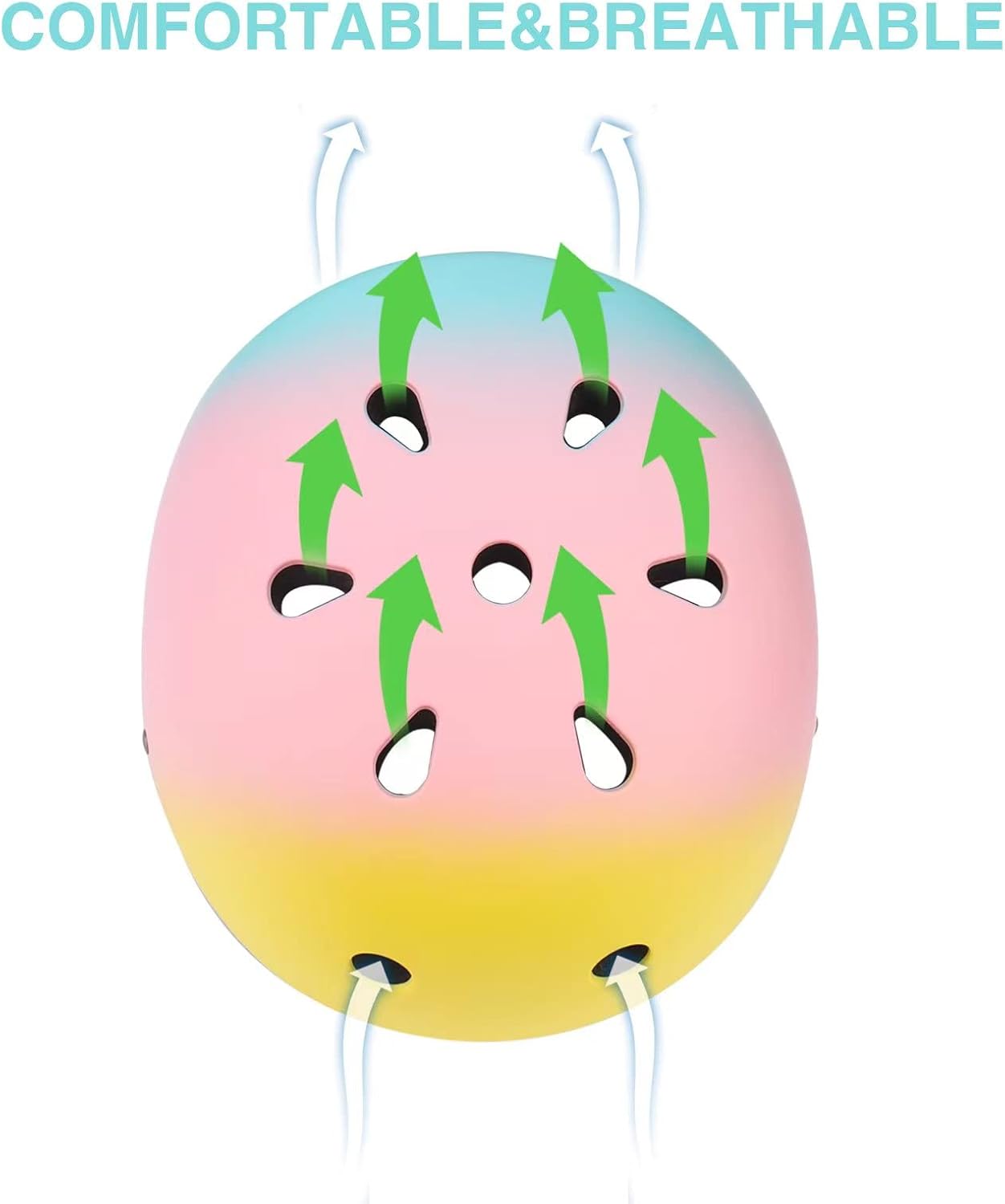 Color Gradient Adjustable Kids Bike Helmet Toddler Helmets for 3-5-8-14 Years Kids Girls Boys Youth Bicycle Helmet for Scooter Balance Bike Roller Skating Skateboard