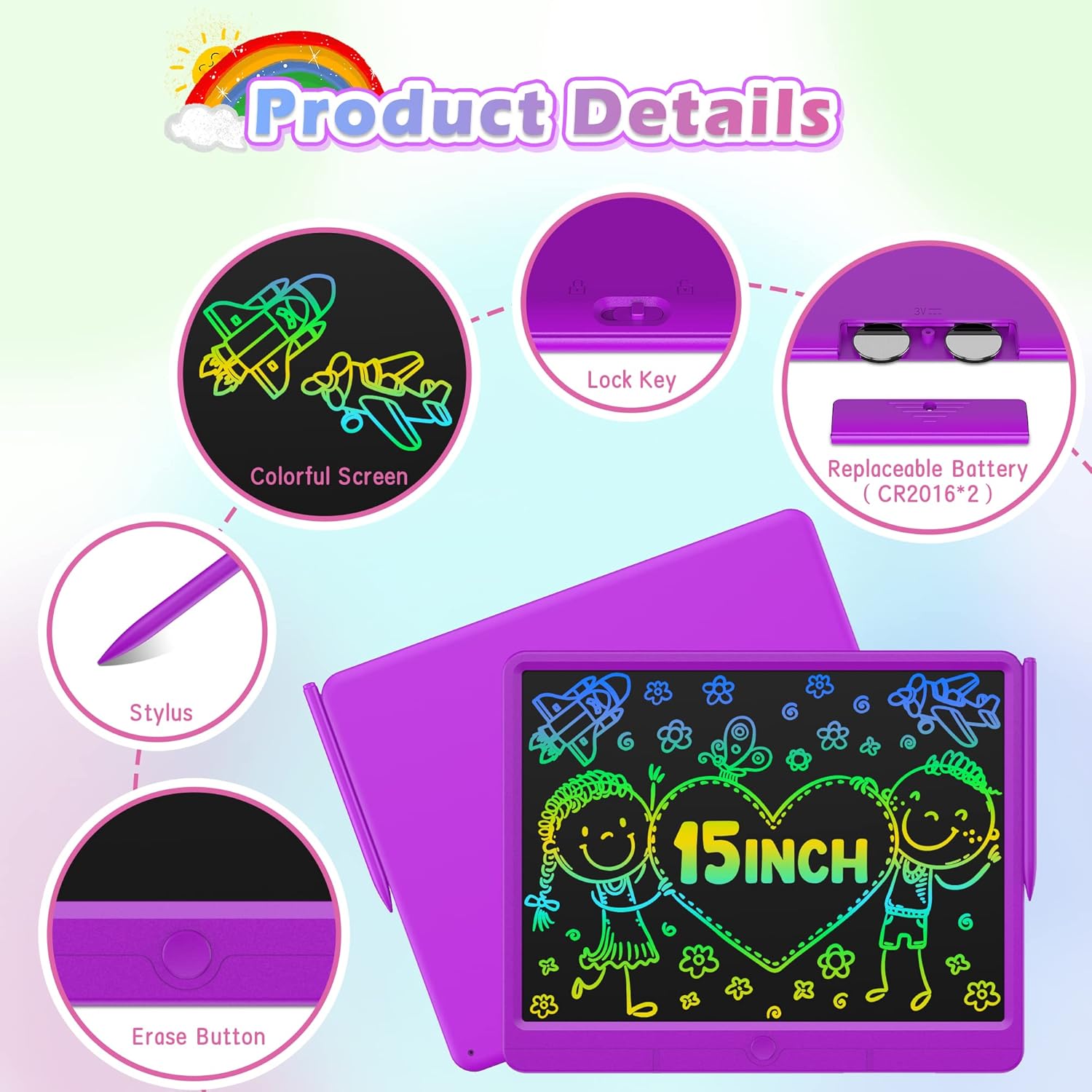 - BEST GIFT FOR KIDS: 15 inch writing tablet for kids is a perfect holiday gift for boys and girls, birthday gift, Christmas gift. It can be used as an educational toy for preschoolers as well as a travel toy for long trips and road trips.Suitable for children aged 3+ years.