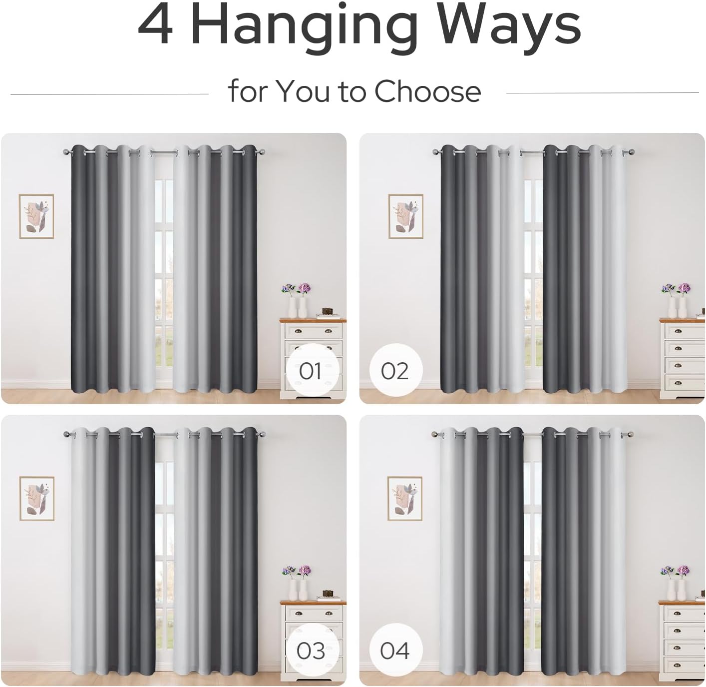 - ★【MULTI FUNCTIONS CURTAINS】This grey gradient room darkening curtains are made of triple-weaved material, not only can block up to 85-95% sunlight but also an energy-saving, balance room temperature, privacy protection, and noise reduction functions, which meet the requirements of most families.
