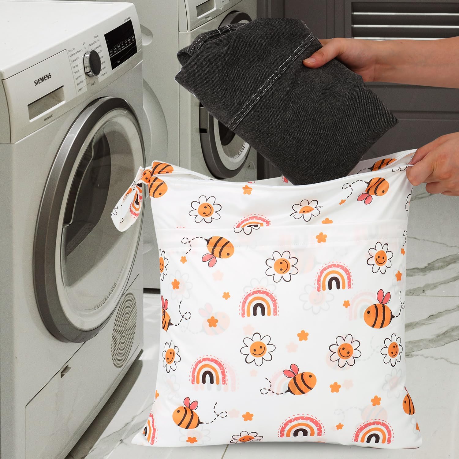• WIDELY APPLICATION: The bags are not only used for laundry, but also can be used as diaper storage, wet/dry bags, toiletry bags, cosmetic bags, handbags, gym clothes bags, swimsuit bags, breast pump parts bags, etc. A great gift for a shower, birthday, Christmas, or New Year.