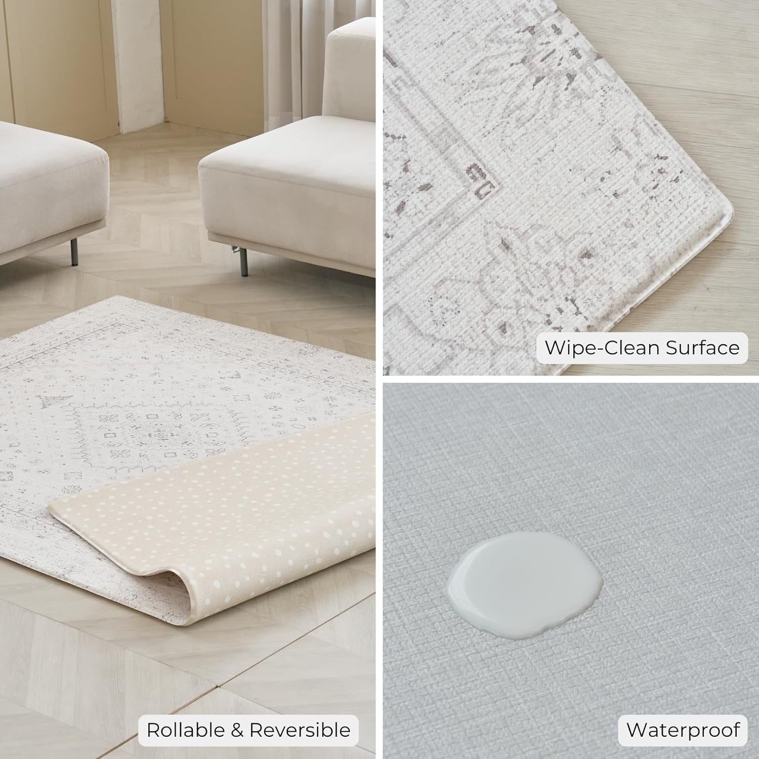 - WATERPROOF & REVERSIBLE - easy to clean with baby wipes. Two-sided for learning and interior