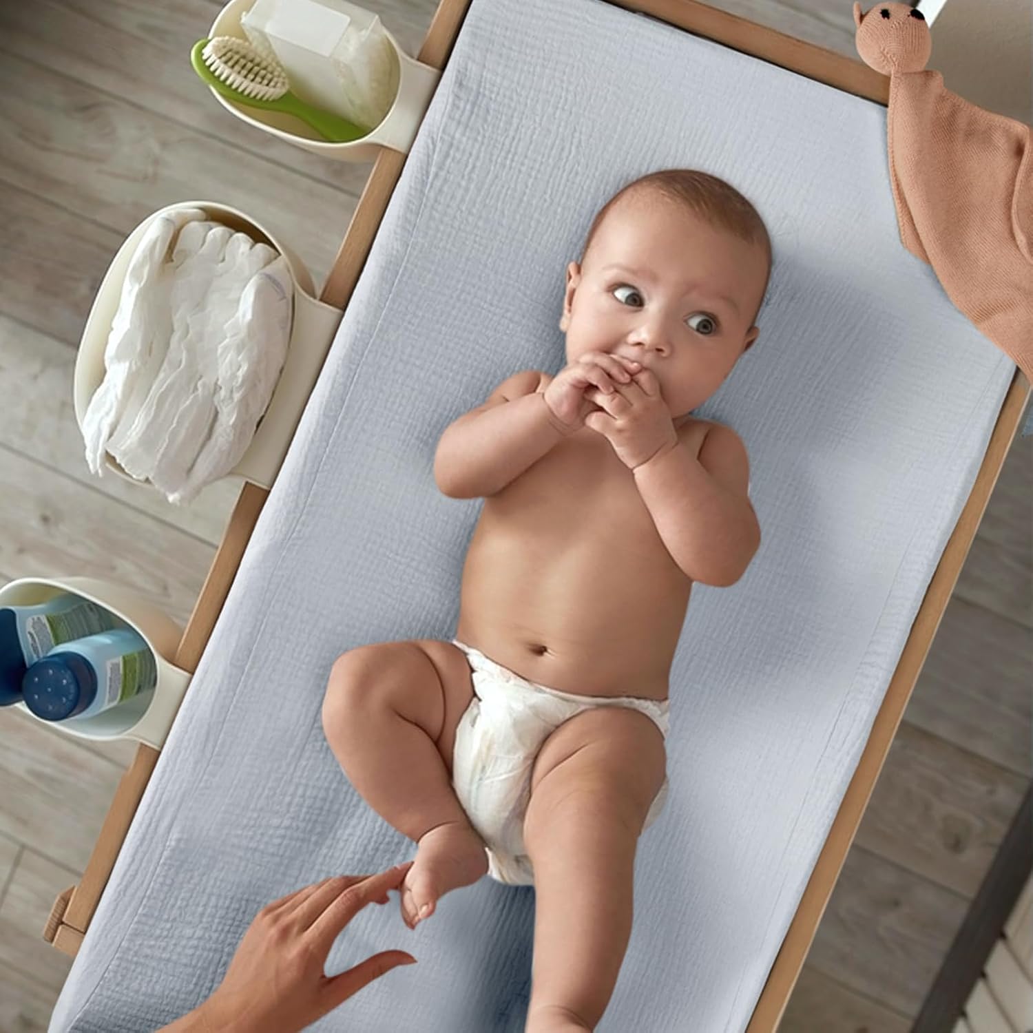 - SOFT AND BREATHABLE: Our changing pad covers is made of 100% muslin cotton. The touch is soft and comfortable, which is very suitable for infant sensitive skin. Lightweight and breathable fabric will keep your baby cool and comfortable.