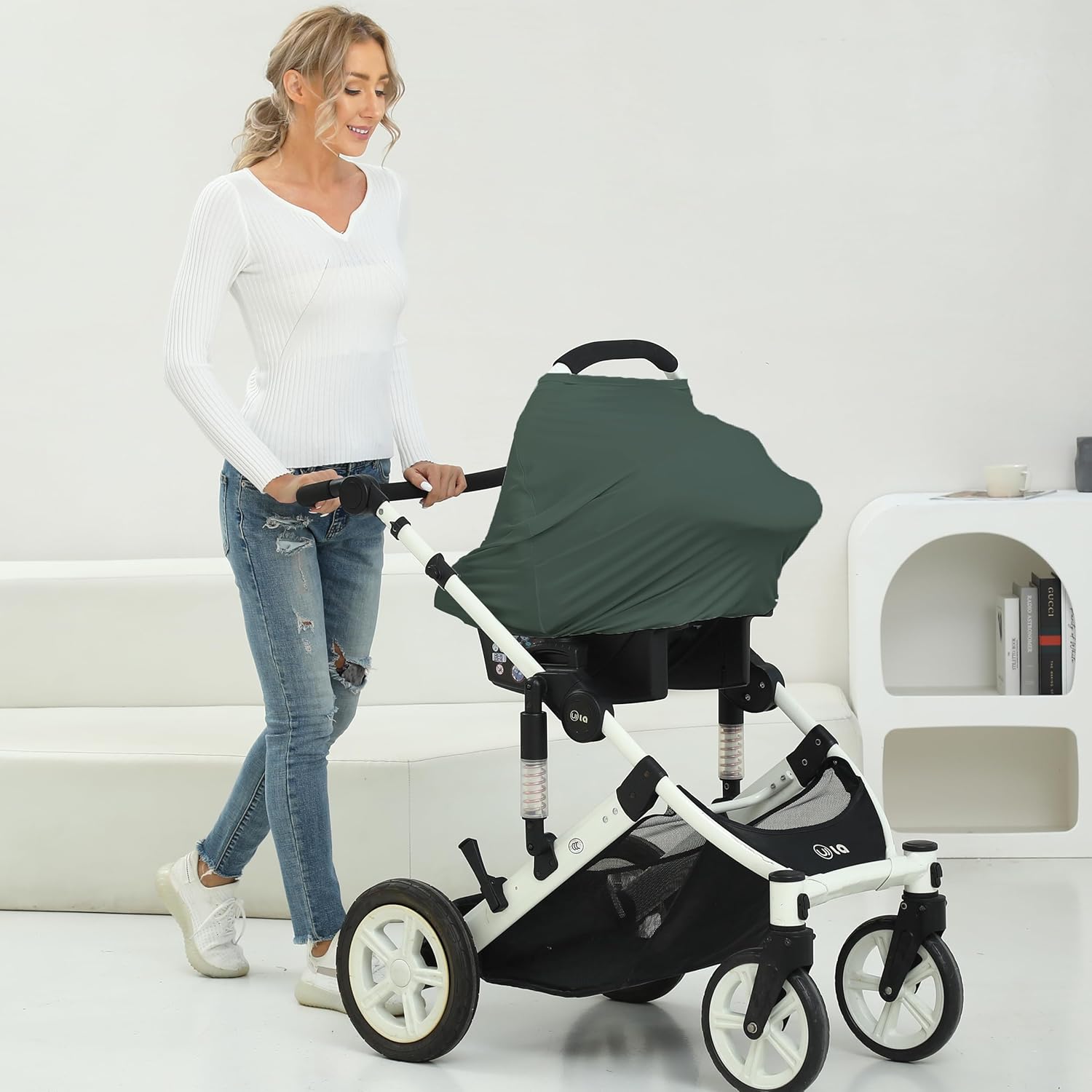 Breathable Car Seat Cover for Babies – Multi-Purpose Soft Rayon Nursing Cover for Breastfeeding, High Stretchy Infant Carseat Canopy, Stroller Cover (Smooth Rayon, Roman Green)
