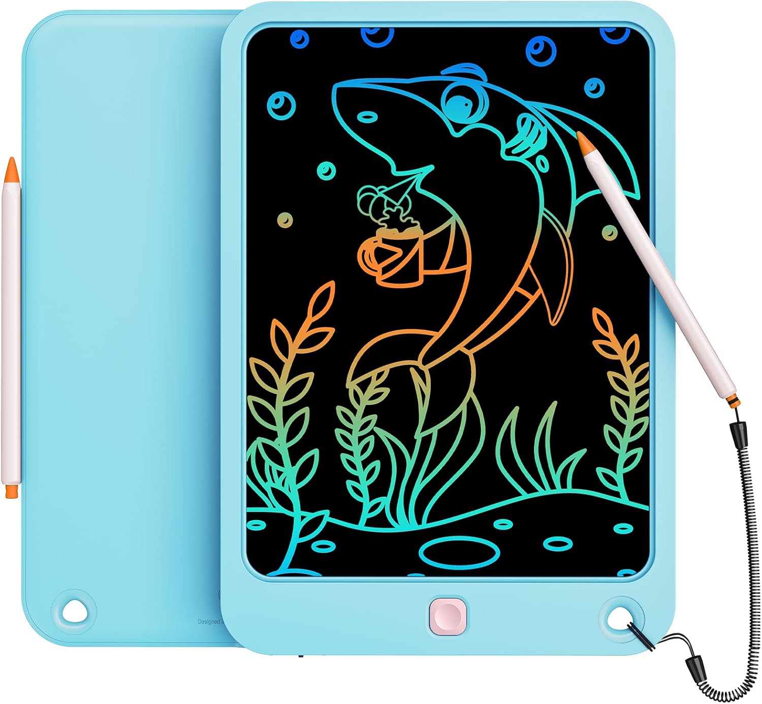 LCD Writing Tablet 10 Inch, Toys for 3 4 5 6 7 8 9 10 Year Old Boys Girls, Colorful Doodle Board Drawing Tablet, Gift for Boys Toddlers Age 3-12 Years, Memo Board, Drawing Pads with Lanyard(Lake Blue)