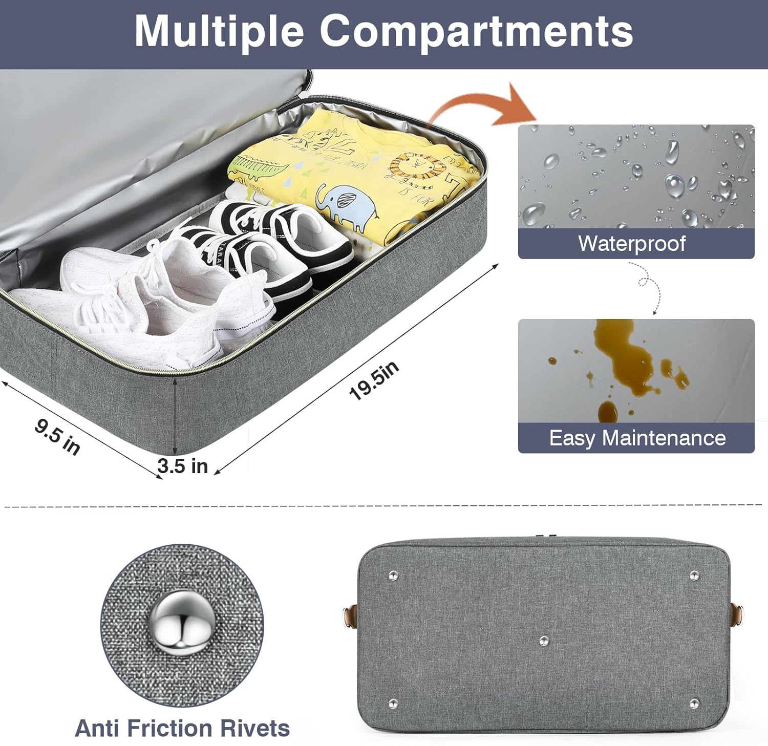 • [Dry Wet Seperated Compartment] The compartment of this travel diaper bag is fashioned with PVC waterproof materials.This compartment can also be used to hold dirty clothes, shoes or wet towels, separating wet and dry to prevent your clean luggage from getting soiled or wet. Compartment size: 19.5*9.5*3.5in. Also studded 4 round metal feet in the bottom to keep the baby diaper bag clean and off the ground.