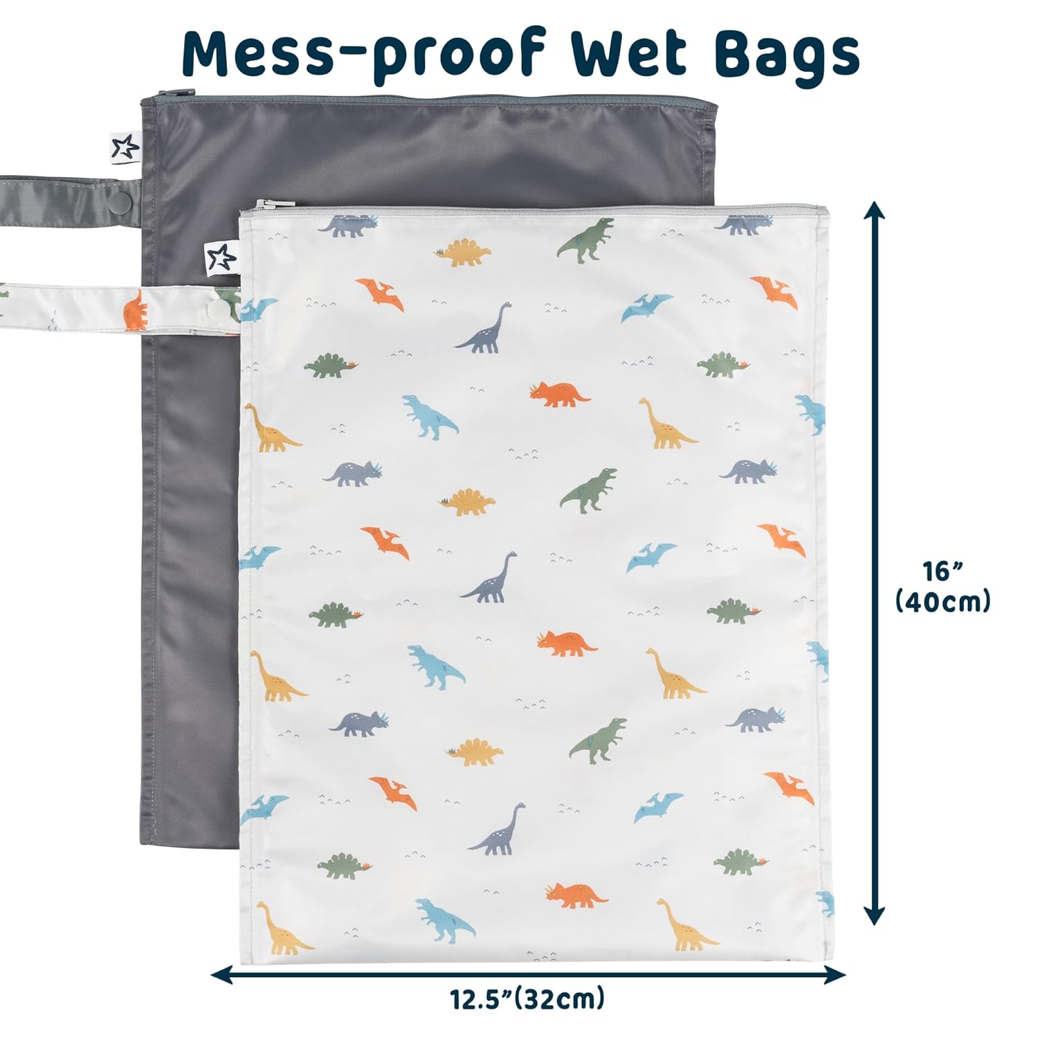 Tiny Twinkle Mess-Proof Waterproof Wet Dry Bag | 2-Pack Reusable Wet Bags for Swimsuits & Baby Clothes | Leakproof Wet Bag for Travel & Diaper Changes for Baby (Dinosaur)