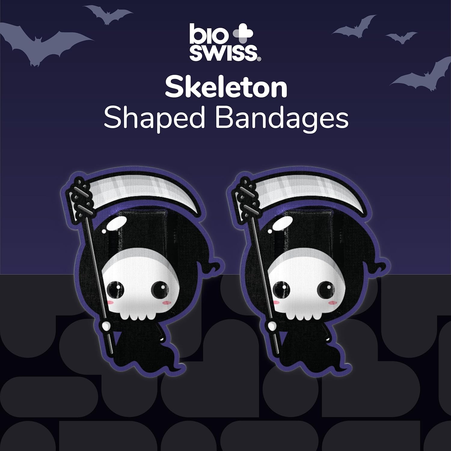 - SKELETON HALLOWEEN BANDAGES: This 24 piece pack of frightfully fun Halloween Skeleton bandages is great for putting a smile on kids' faces while protecting wounds such as cuts, scrapes, and burns; sticky bandages are perfect for kids and adults alike, and also for school nurses and pediatric doctors