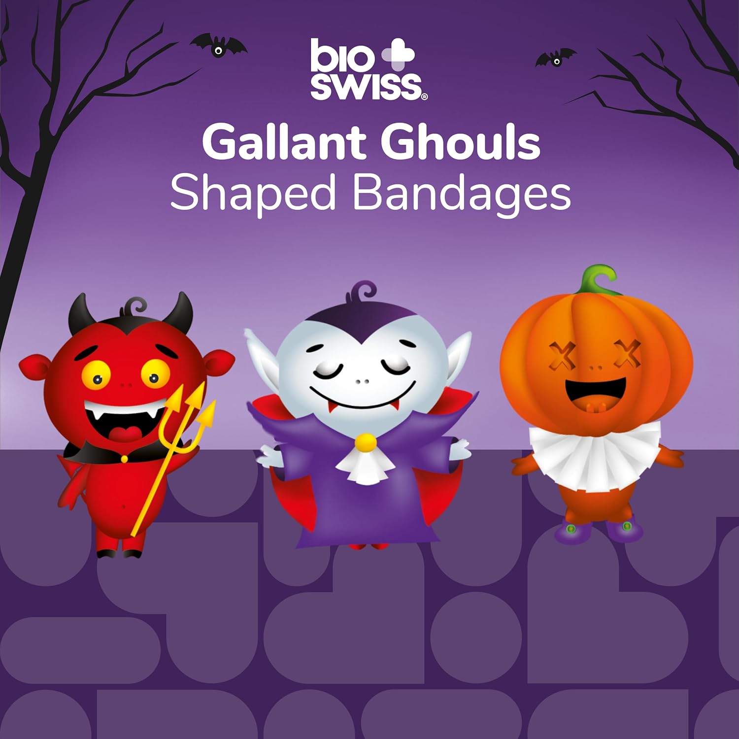 - GHOUL HALLOWEEN BANDAGES: This 50 piece pack of frightfully fun Halloween Ghoul bandages features Felix the Devil, Draco the Pumpkin, and Darthula the Vampire shapes, and is great for putting a smile on kids' faces while protecting wounds such as cuts, scrapes, and burns; sticky bandages come in a cute plastic container and are perfect for kids and adults alike, and also for school nurses and pediatric doctors
