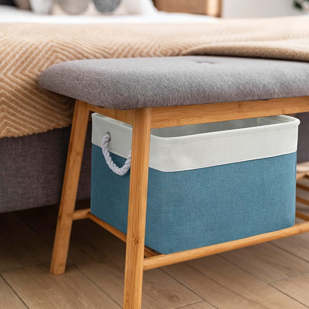- It includes 2 pack small storage baskets. Sophisticated and practical. Used as closet organization bins, room toy storage boxes, living room, laundry organizing, basement, cat & dog toy holder, nursery, clothes basket, , garage storage, book and magazine organizer, makeup basket, bathroom towel and toilet storage, shelf fabric drawers and many other uses