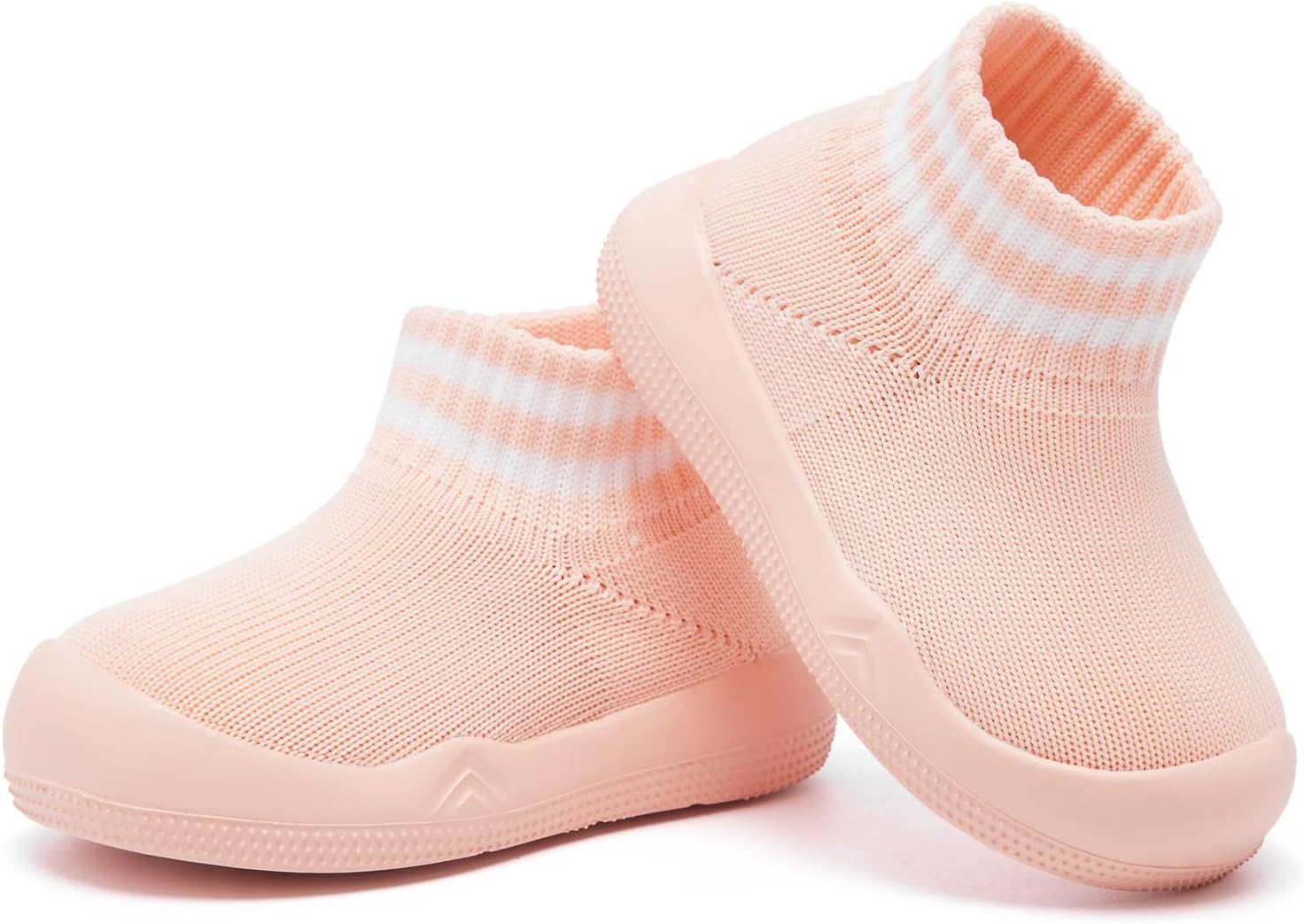 - Breathable Upper:Baby sock shoes made of soft fabric knit,friendly to the skin, and very safe for infant babies,soft and breathable, comfortable to wear all year round.