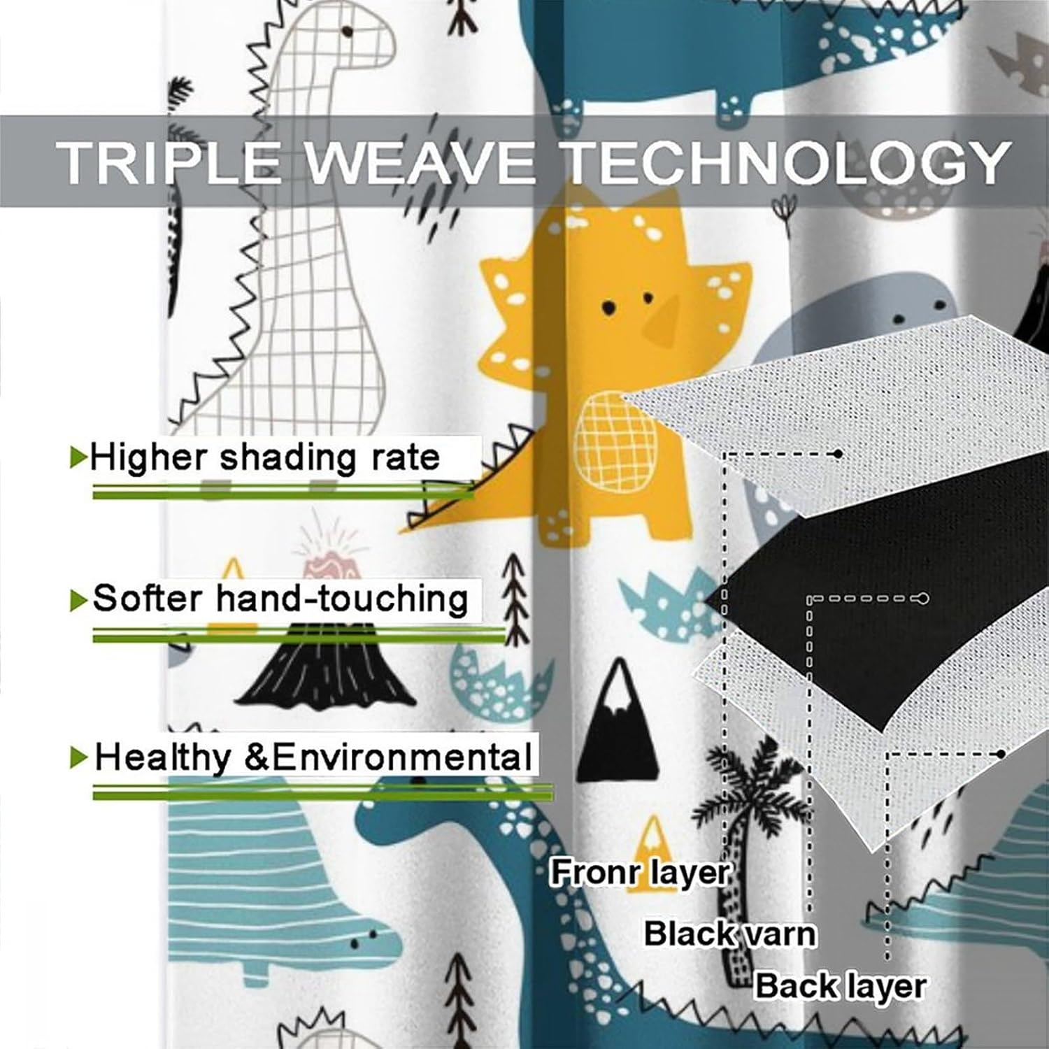 Kids Dinosaur Curtains for Boys Girls Bedroom Decor Cartoon Dino Colorful Cute Funny Wildlife Animal Printed Blackout Rod Pocket Window Drapes for Baby Nursery Playroom Living Room W21xL54in 2 Panels