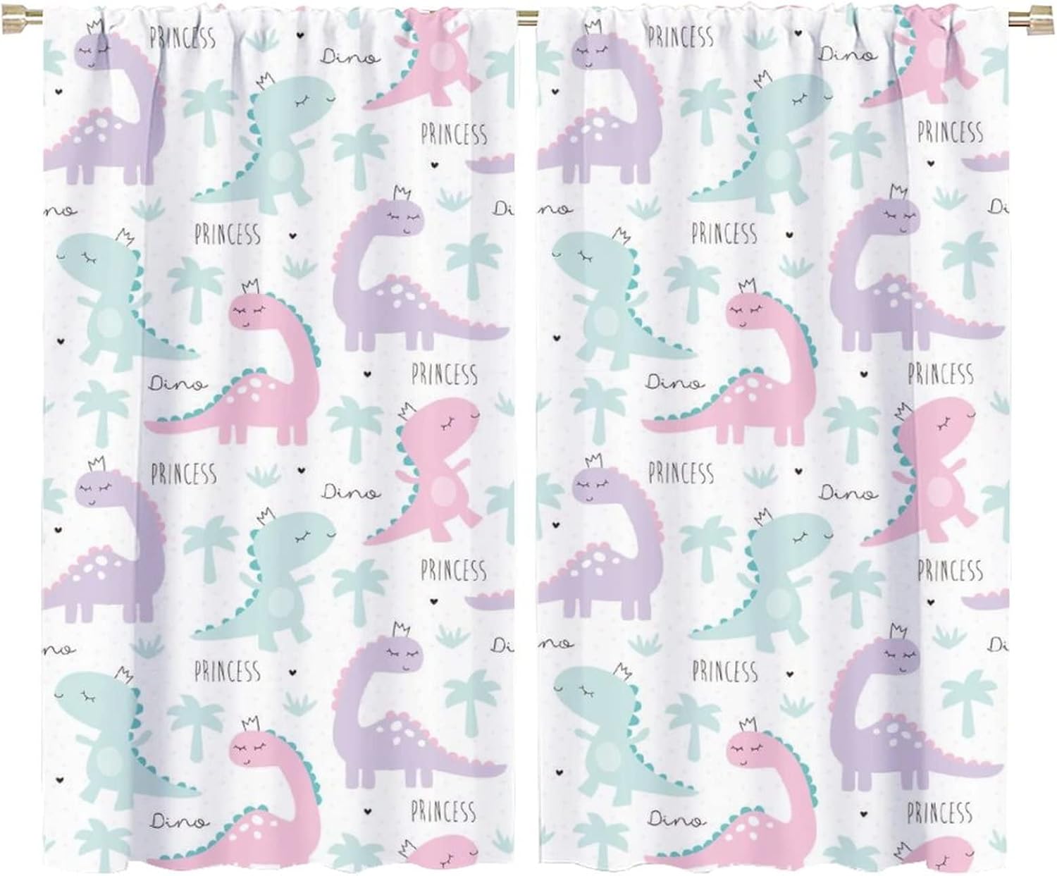 Kids Dinosaur Curtains for Boys Girls Bedroom Decor Cartoon Dino Colorful Cute Funny Animal Wildlife Printed Blackout Rod Pocket Window Drapes for Baby Nursery Playroom W36xL63in 2 Panels