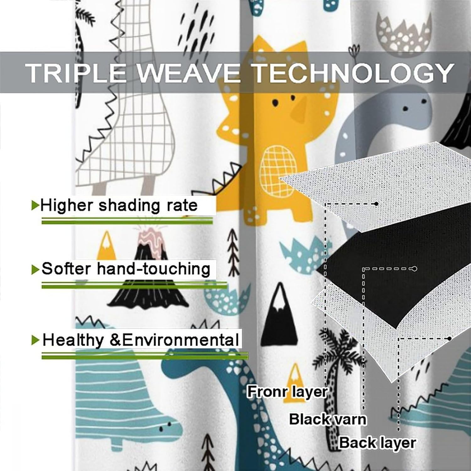 Kids Dinosaur Curtains for Boy Girl Bedroom Decor Cartoon Dino Colorful Cute Funny Wildlife Animal Printed Blackout Rod Pocket Window Drapes for Baby Nursery Playroom Living Room W27.5xL63in 2 Panels