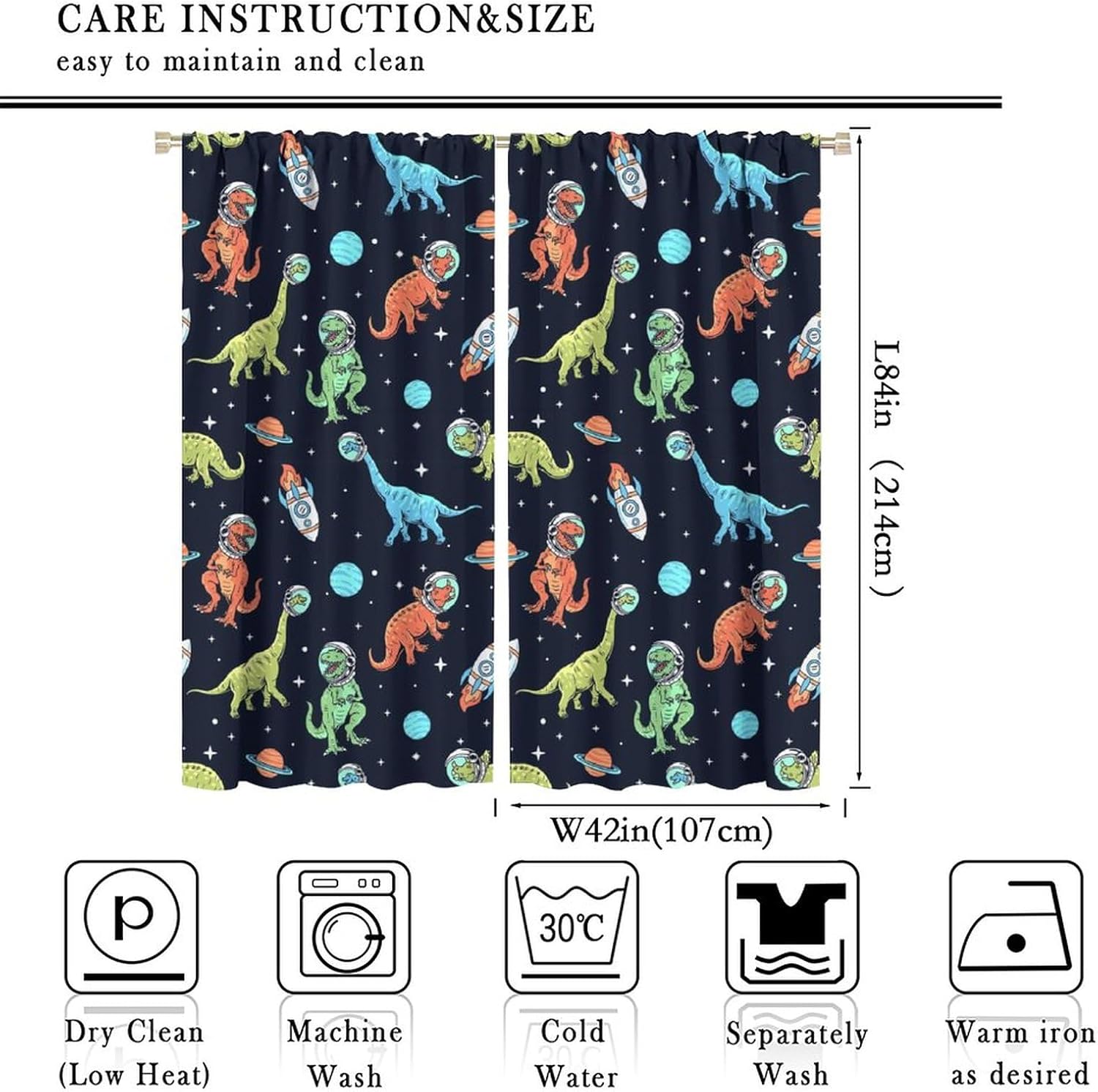 Cartoon Dinosaur Curtains for Kids Boys Girls Home Decor, Astronaut Rocket Funny Outer Space Blackout Rod Pocket Window Drapes for Bedroom Living Room W42xL84in 2 Panels
