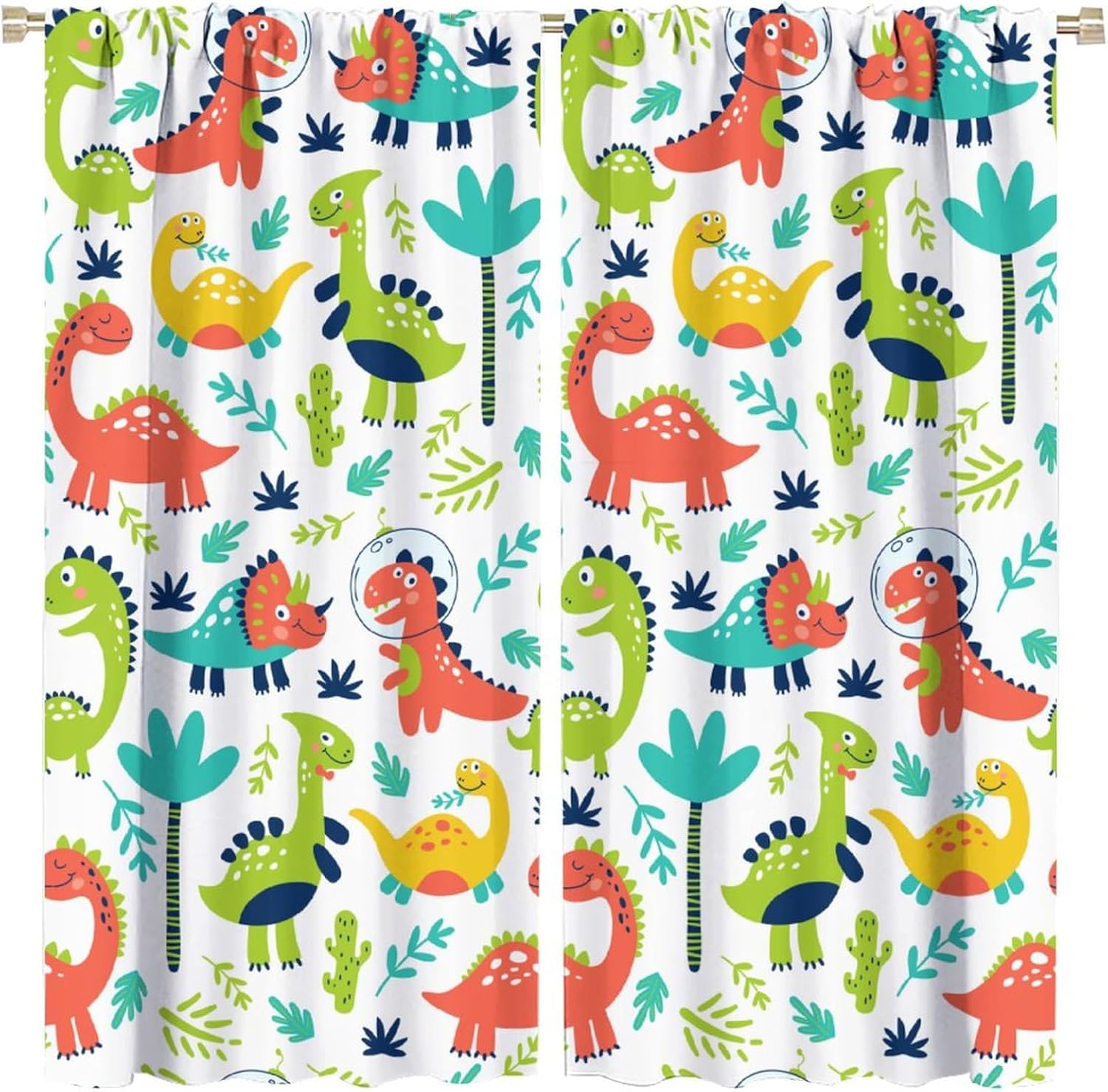 Rustic Dinosaurs Curtains Colorful Dino Kids Boys Cartoon Cute Cool Funny Decor Printed Blackout Rod Pocket Window Drapes for Living Room Bedroom W21xL54in 2 Panels