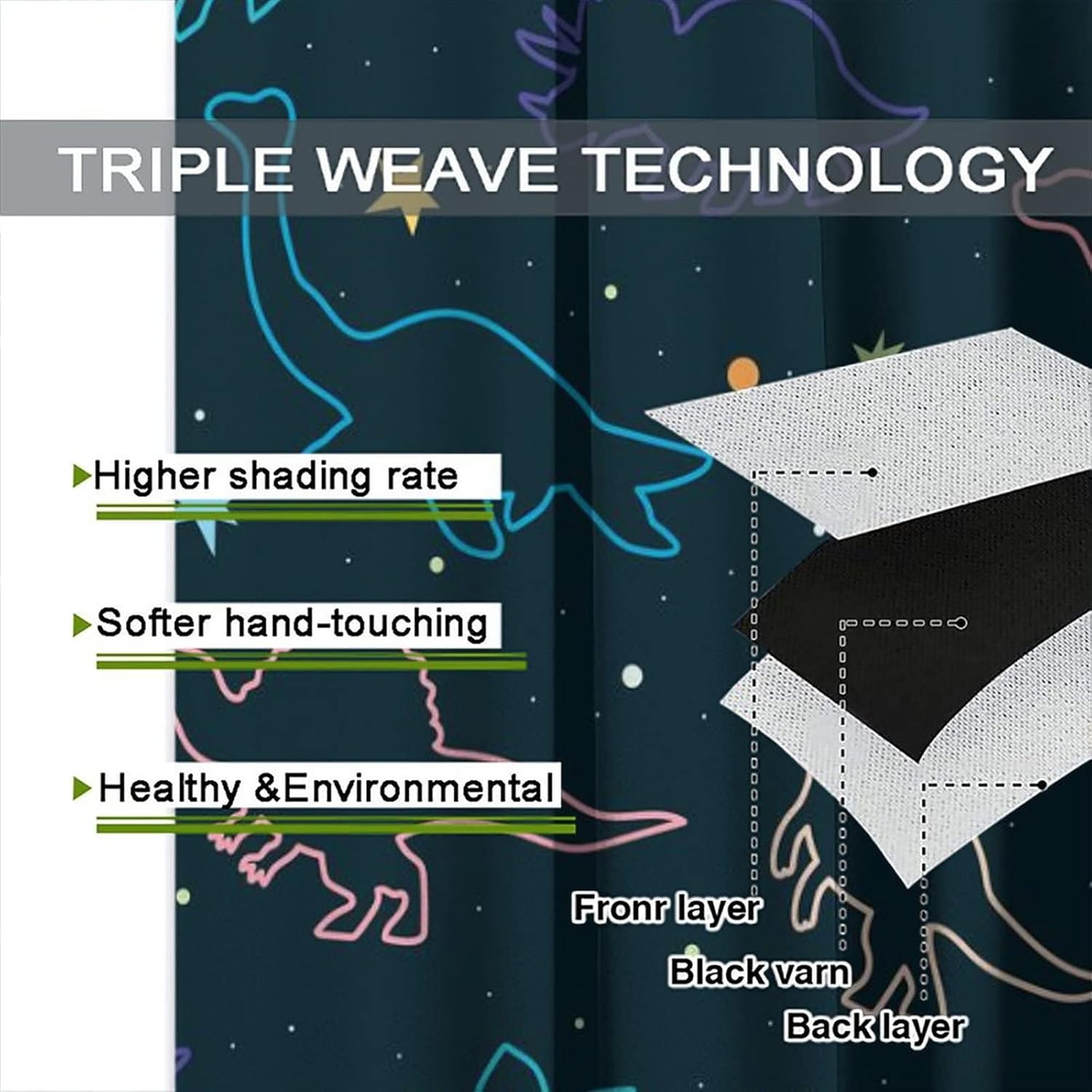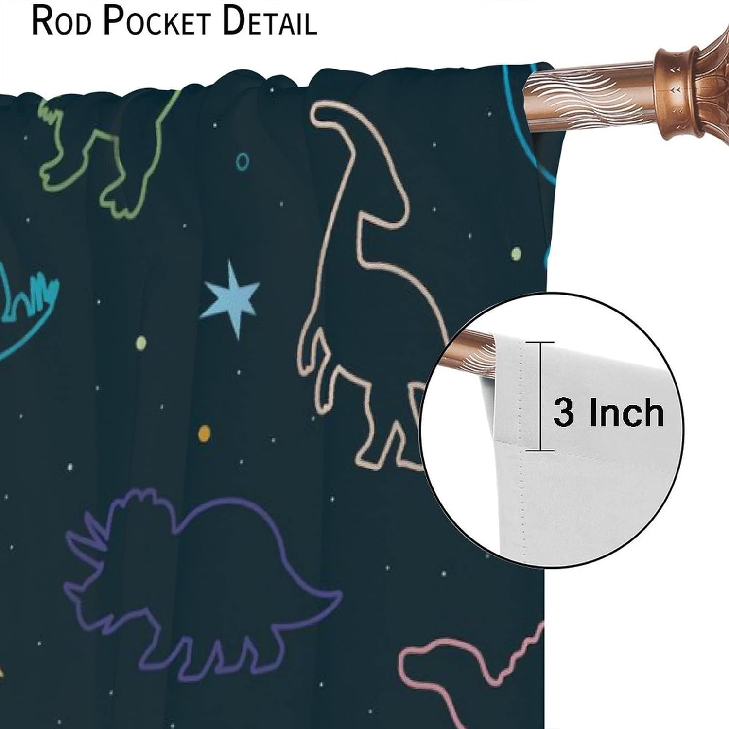 Cartoon Colorful Dinosaur Curtains for Kids Boys Girls Home Decor, Astronaut Funny Outer Space Star Blackout Rod Pocket Window Drapes for Bedroom Living Room W27.5xL63in 2 Panels