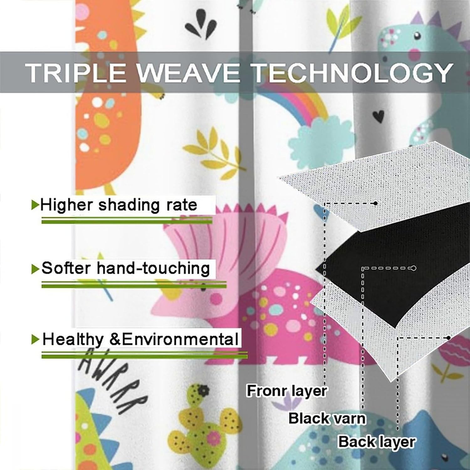 Cartoon Dinosaur Curtains for Kids Boys Girls Home Decor Childish Cute Dino Animals Print Pattern Rod Pocket Blackout Window Drapes for Nursery Baby Bedroom Playroom W21xL54in 2 Panels