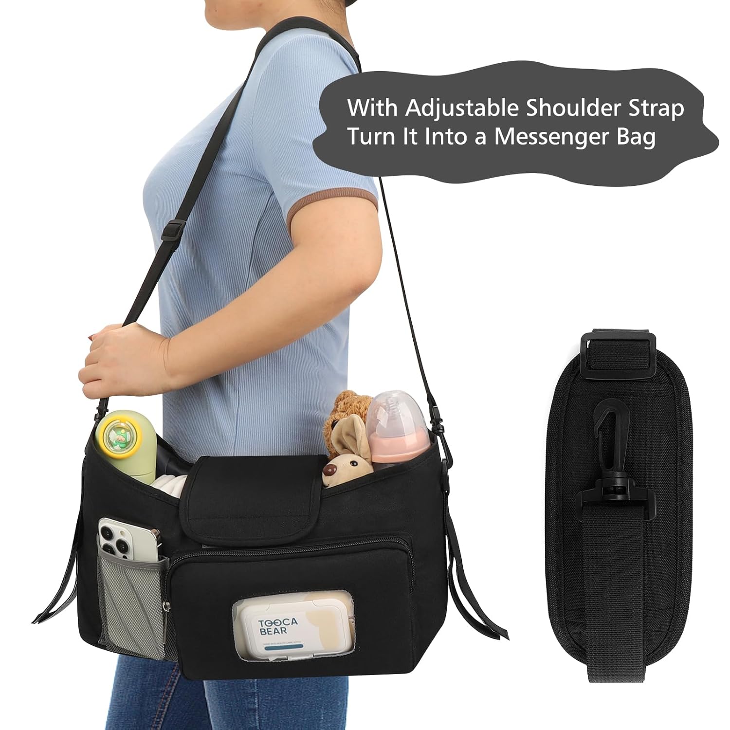 - Two Usage Methods : It can be hung as a stroller organizer on the stroller. When you don't need to use a stroller, you can also install the accompanying strap and carry this storage bag for easy outing.