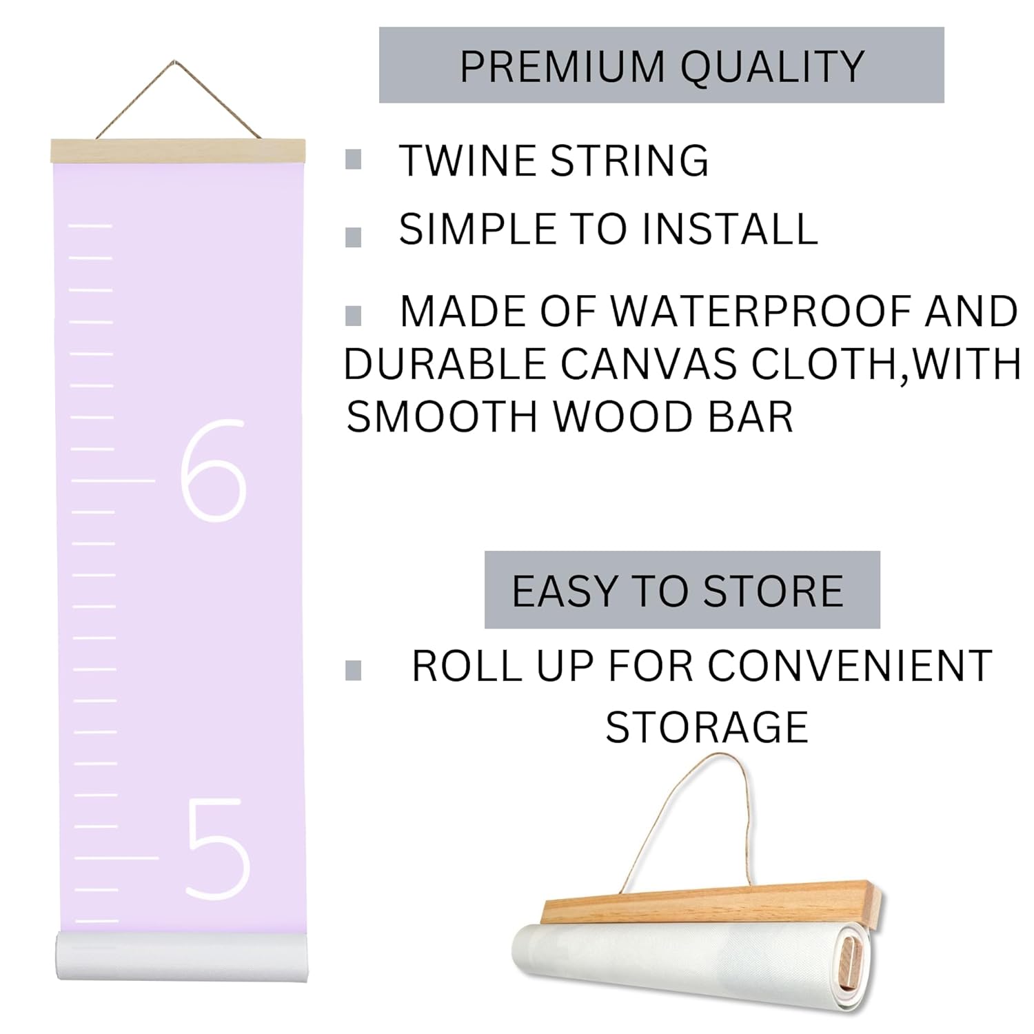 Morxy Canvas Growth Chart for Kids - Unisex Kids Room Wall Decor - Measuring Height Chart- Wall Tape with Height Chart for Kids (Canvas, Plain Purple)