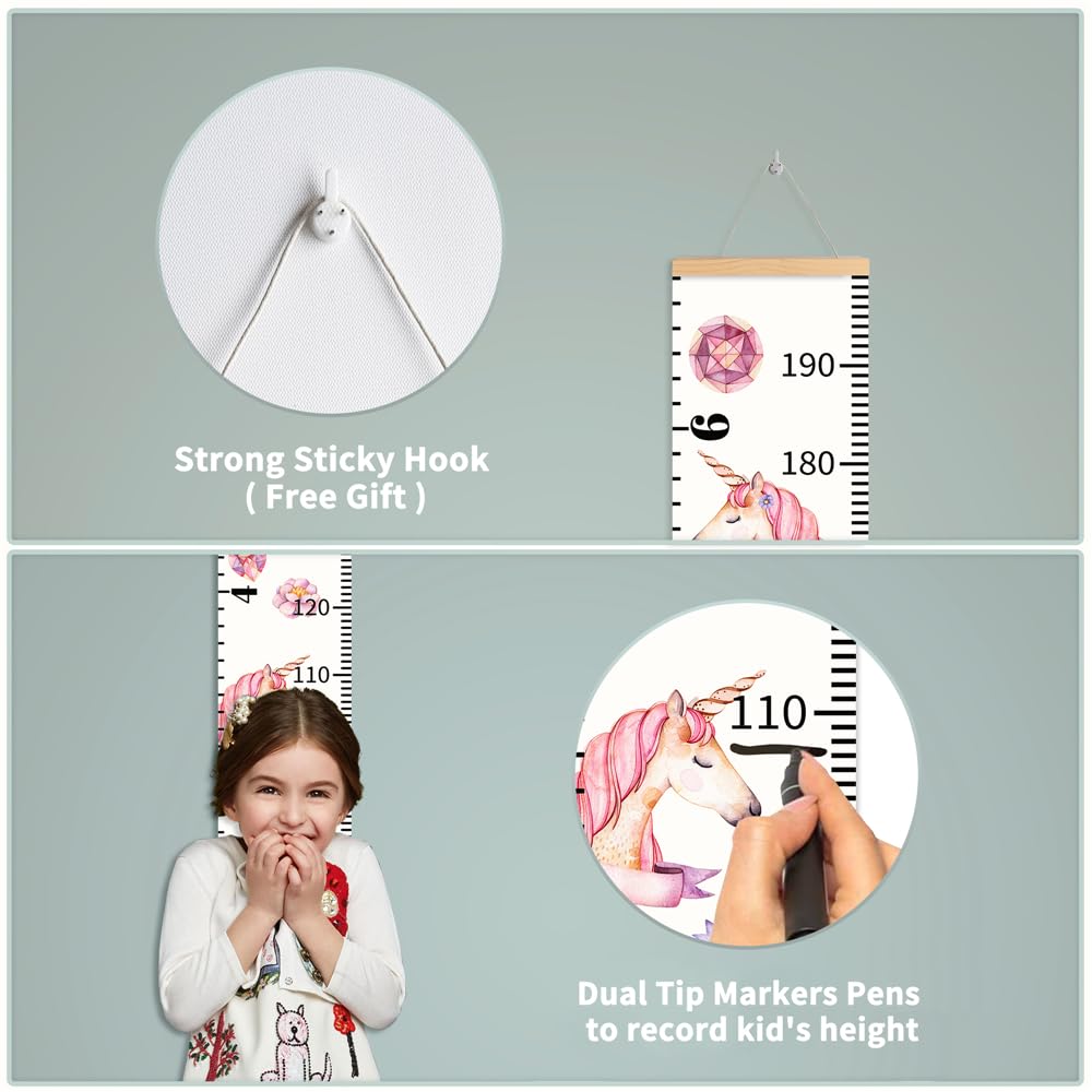 - CONVENIENT TO USE - This kids growth chart easy to install and remove. You could hang it on the wall or roll it up to put in box for saving.