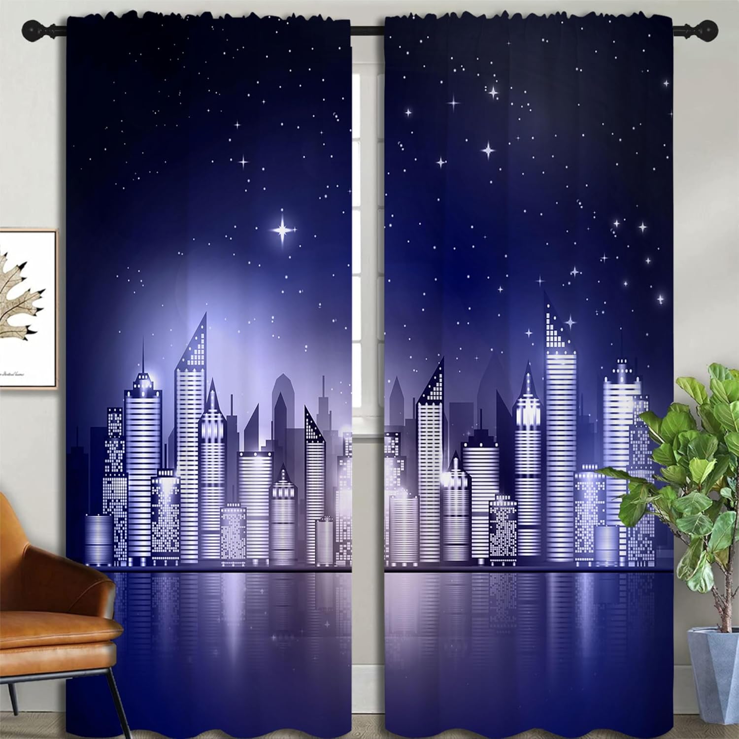 - ✿【Fashion Design】: Elevate your room decor with these City theme printed decorative curtains featuring New York Skyline Modern City Starry Sky Night View Design. They're for any room.