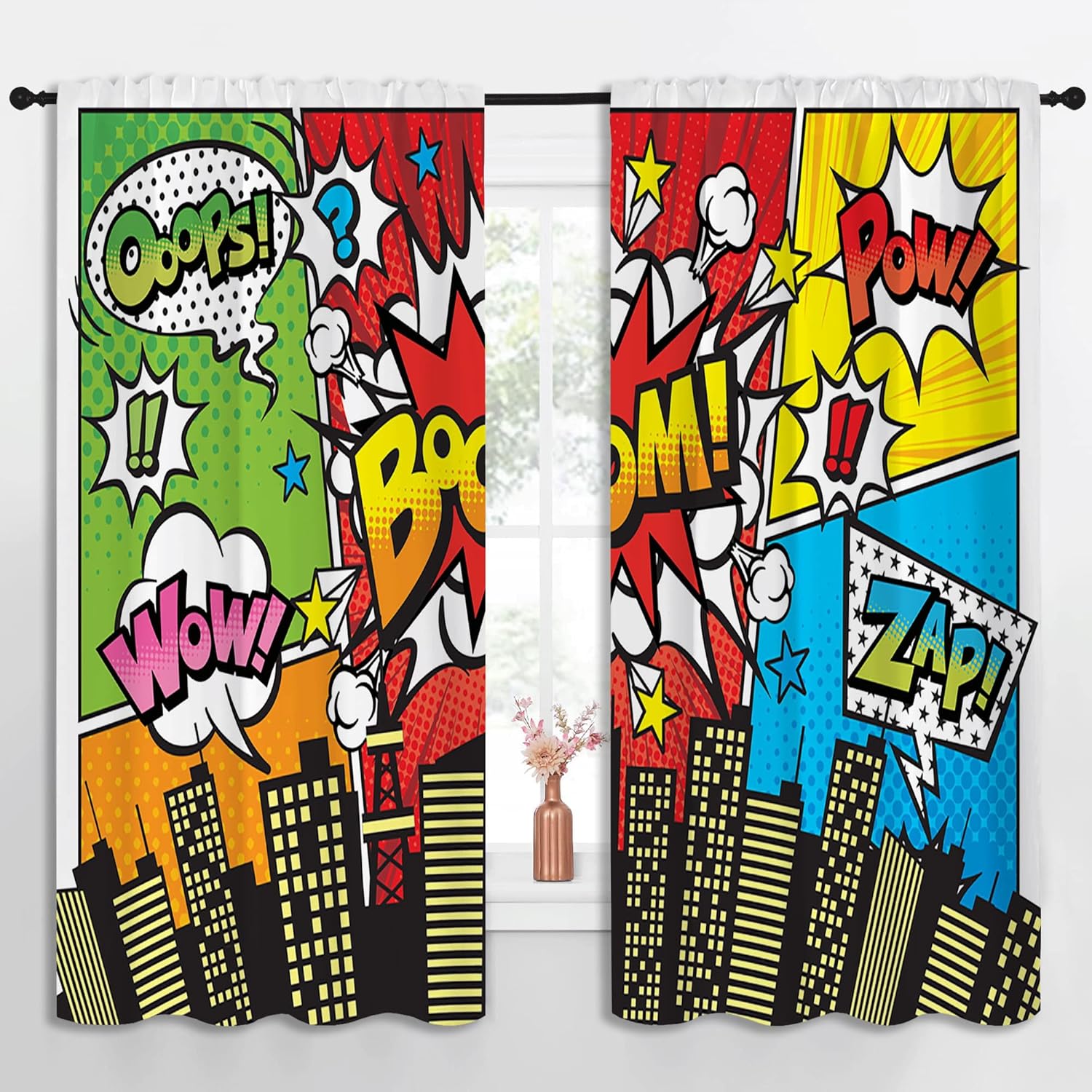 - ✿【Fashion Design】: Elevate your room decor with these Superhero City Wars Explosion theme printed decorative curtains featuring Colorful Comics Ar Design. They're for any room.