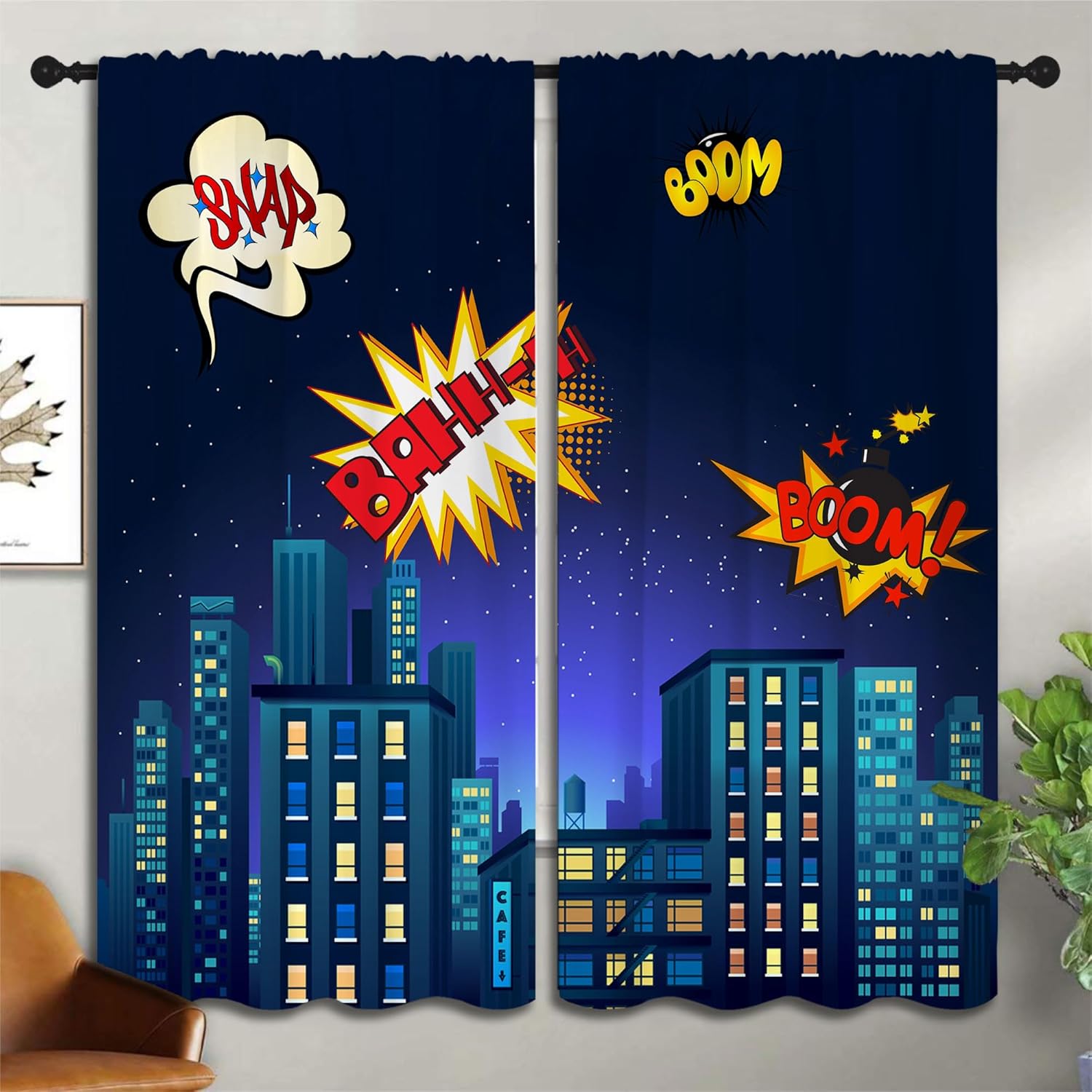 - ✿【Fashion Design】: Elevate your room decor with these Superhero theme printed decorative curtains featuring Cartoon Skyline Buildings Cityscape Design. They're for any room.