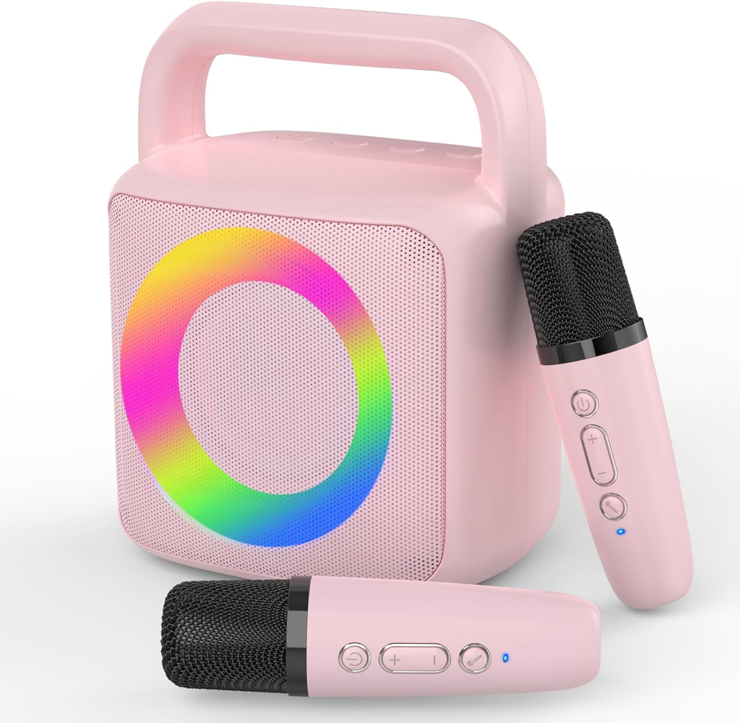 Karoke Machine with 2 Wireless Mics,Portable Karaoke Microphone Toys with Colorful Lights and Magic Voices for Camping Party, Birthday Gift for Boys Girls Teenages Adults